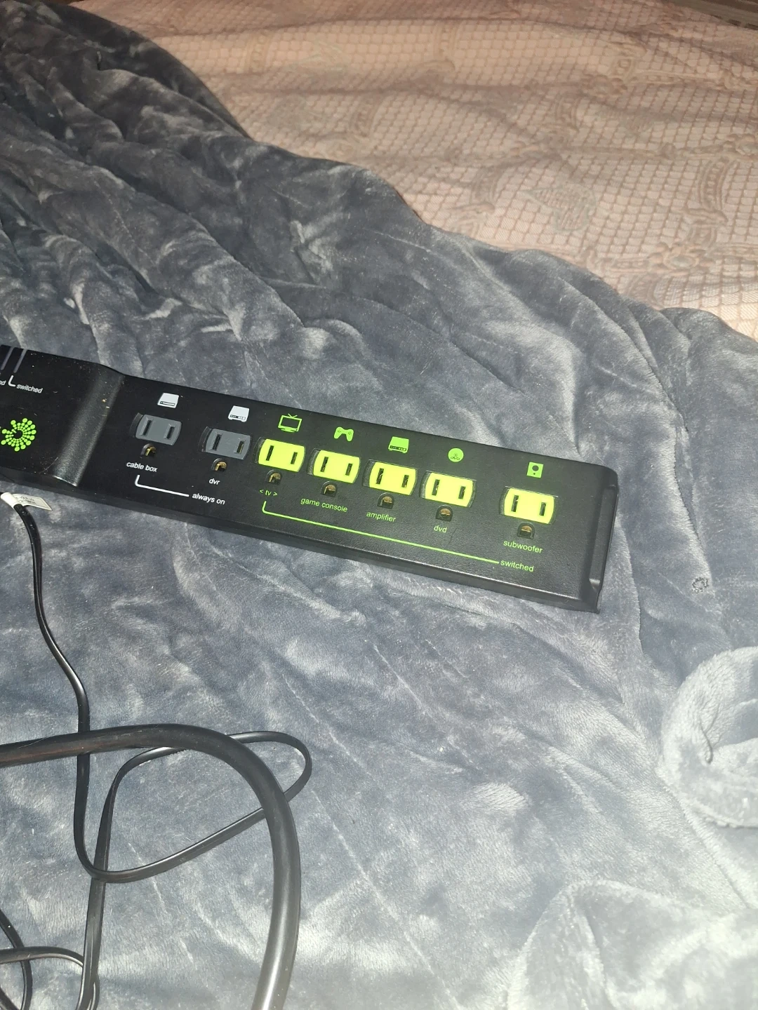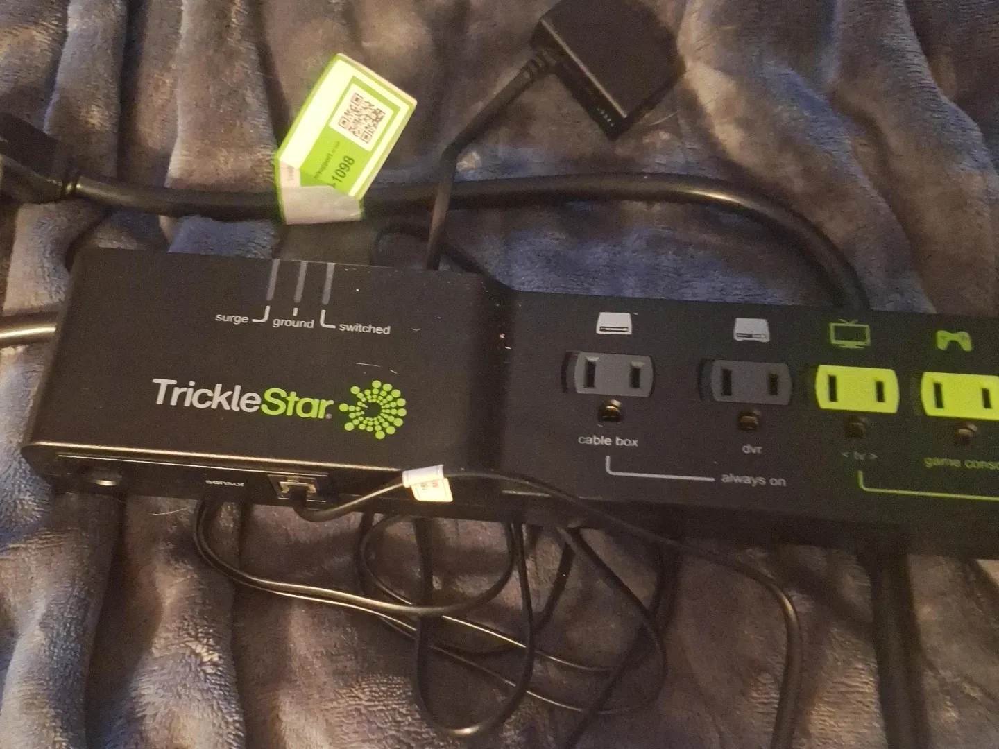 This TrickleStar power strip 🏆 offers surge protection and 8 outlets, including dedicated ports for cable box, DVR, TV, game console, amplifier, and subwoofer. It's designed to manage power for your home entertainment system effectively.