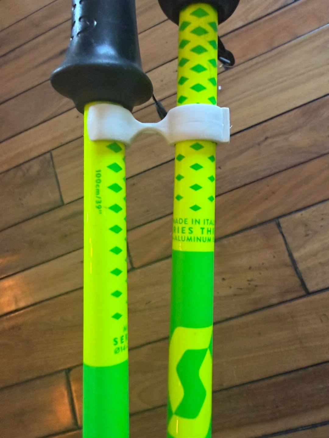 *NEVER USED*These are Scott ski poles made in Italy. They're constructed from aluminum and are 100cm or 39 inches long. The poles are neon yellow with green accents and black grips.