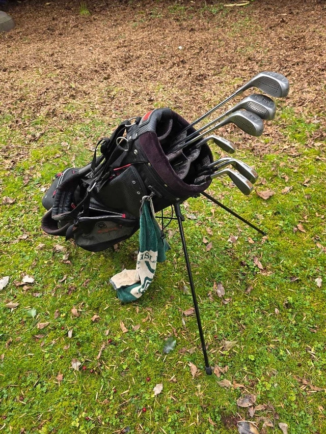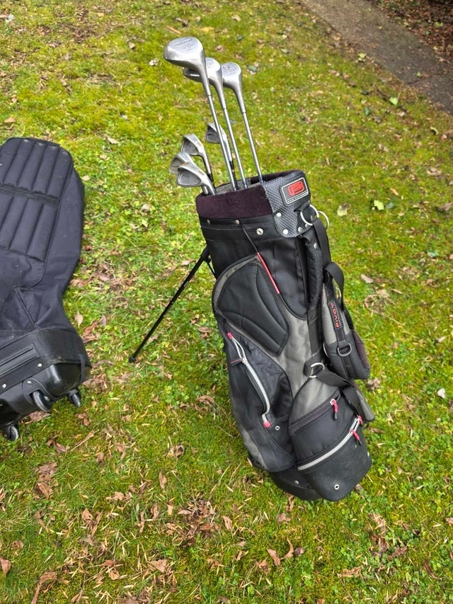 Selling a PowerBilt Grand Slam golf set! This used set includes a driver, 3 and 5 woods, and 7, 8, 9, and Pitching Wedge irons. The clubs are in fair condition. There is a Wilson Staff travel bag included. PowerBilt Grand Slam woods, PowerBilt Jazz irons, Wilson Staff Travel Bag. I'm selling this for $60. If the ad is up, then it's available!