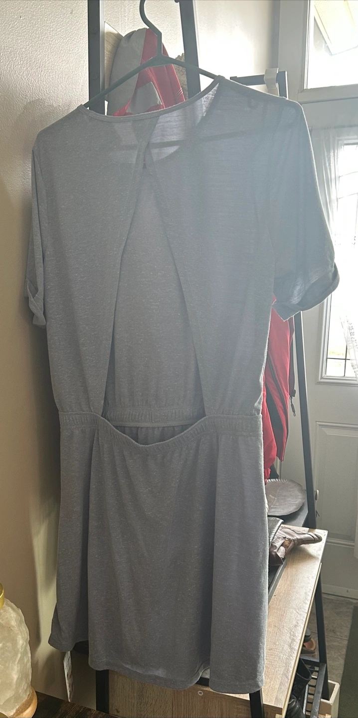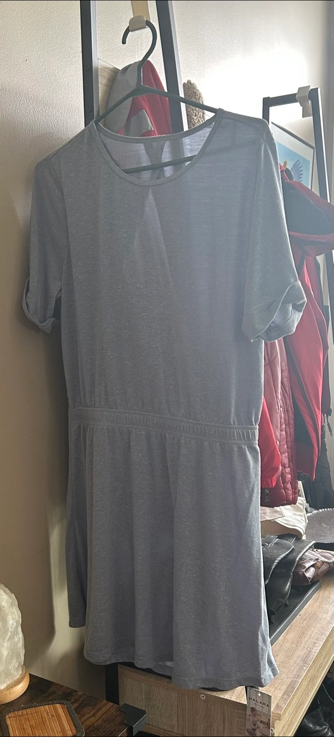 Selling a Halara dress in size XL. It's a light grey colour and made from 85% polyester and 15% flax. Perfect for a casual day out!