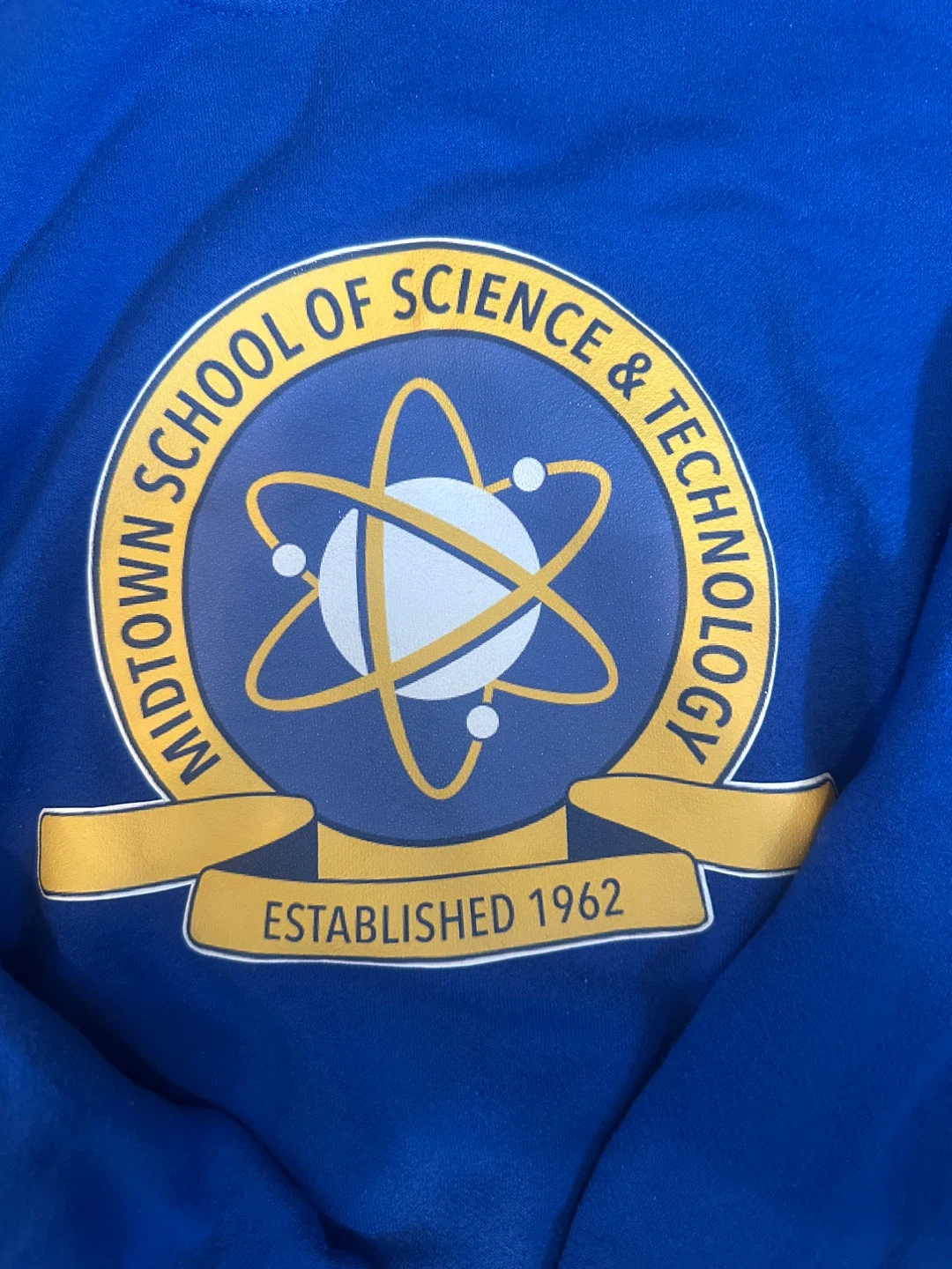 -Blue crewneck sweatshirt from Peter Parker / Spider Man Midtown School of Science & Technology.
