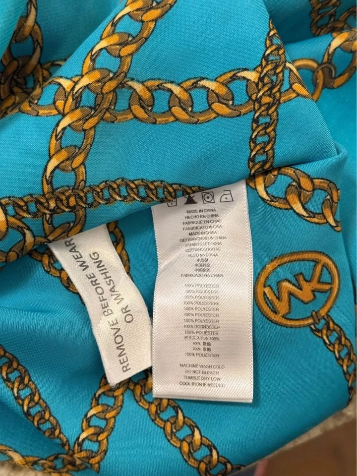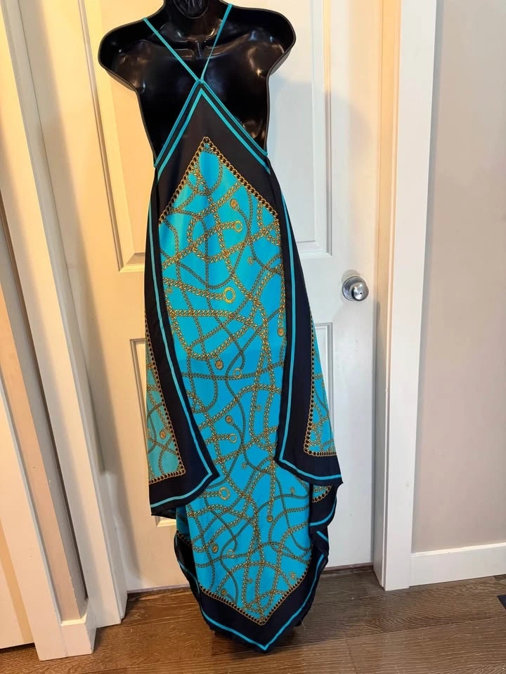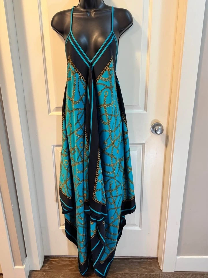 Michael Kors Chain Scarf Print Handkerchief Maxi Dress Turquoise