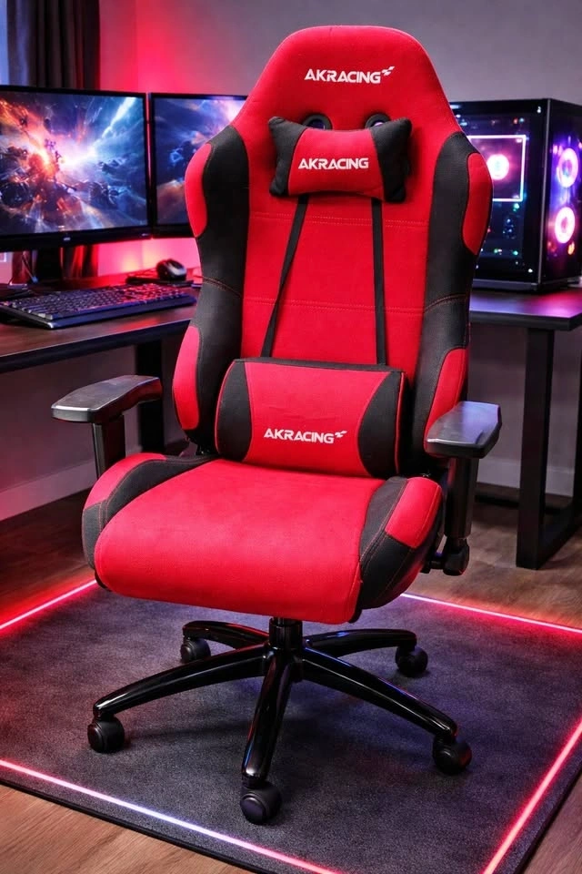 A fresh find from Clean Sweep Goods — rescued, cleaned, and ready for a new home. This is a red & black ergonomic racing-style gaming/office chair. It features adjustable height, a swivel base, rolling wheels, and armrests. It also includes headrest and lumbar support cushions. Great for gaming, work-from-home setups, or study space. Good overall condition, cleaned and ready to use. Minor signs of normal use may be present, but nothing that affects function.