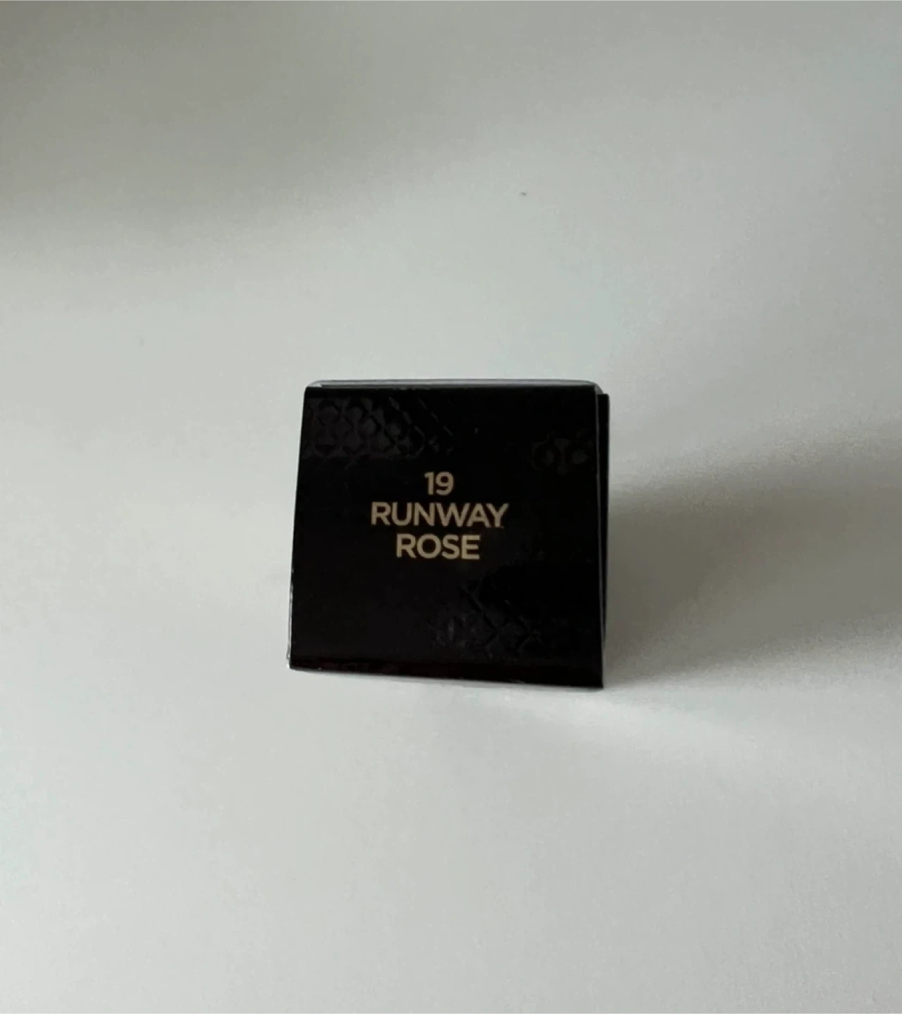 A luxurious lipstick in the shade 19 Runway Rose. Its rich formula glides on smoothly for a comfortable wear. Beautifully packaged in a gold and dark casing.