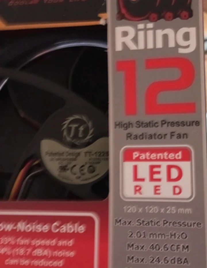 Thermaltake Riing 12 High Static Pressure Radiator Fan with patented red LED lighting.