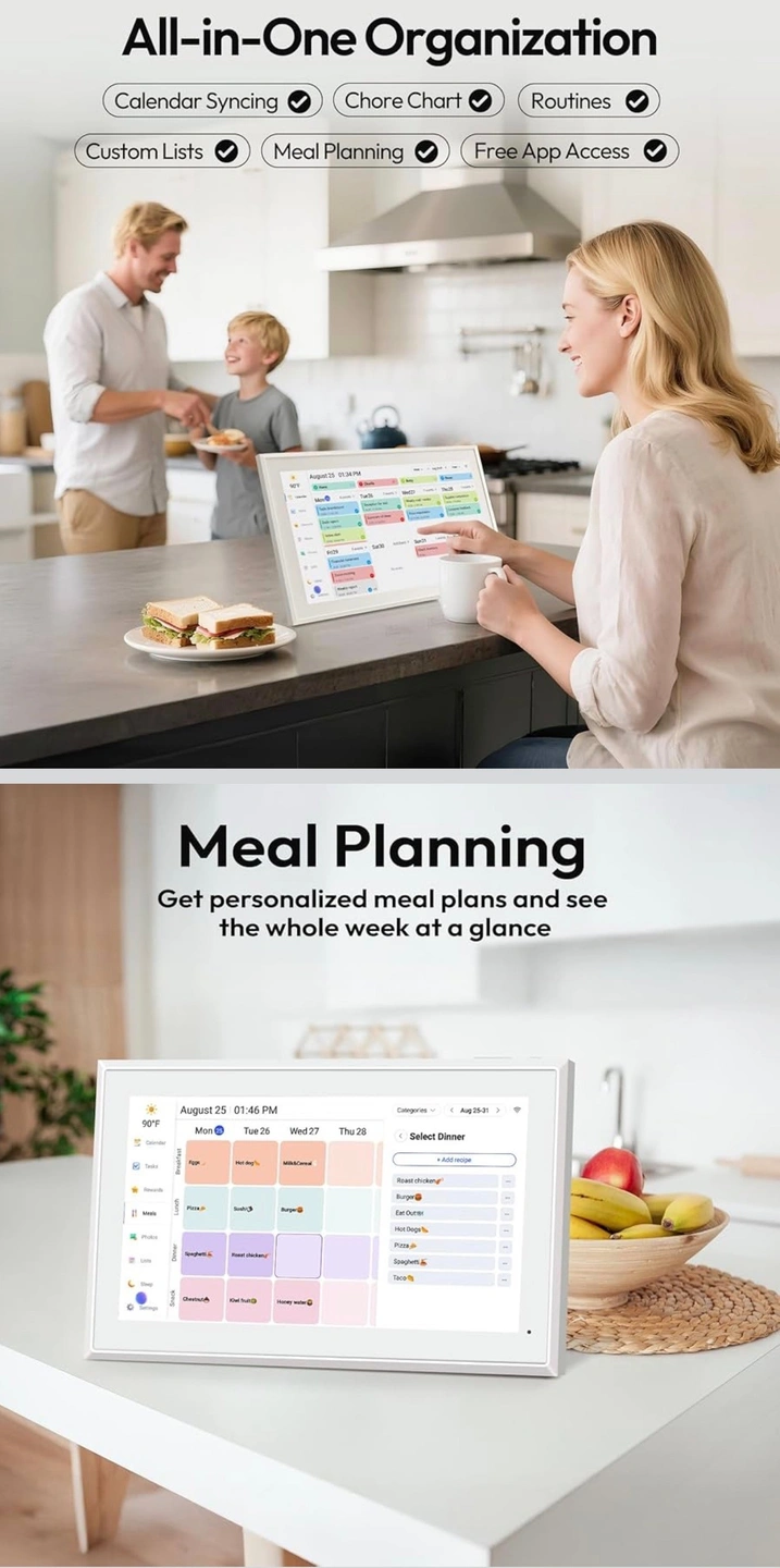 [Interactive Chores Chart & Dinner Planner] Our digital calendar keeps housework organized and motivates family members, especially children, to develop healthy habits with an interactive chore chart. Display your family dinner plans to keep everyone informed and eliminate the daily "What's for dinner?" question.