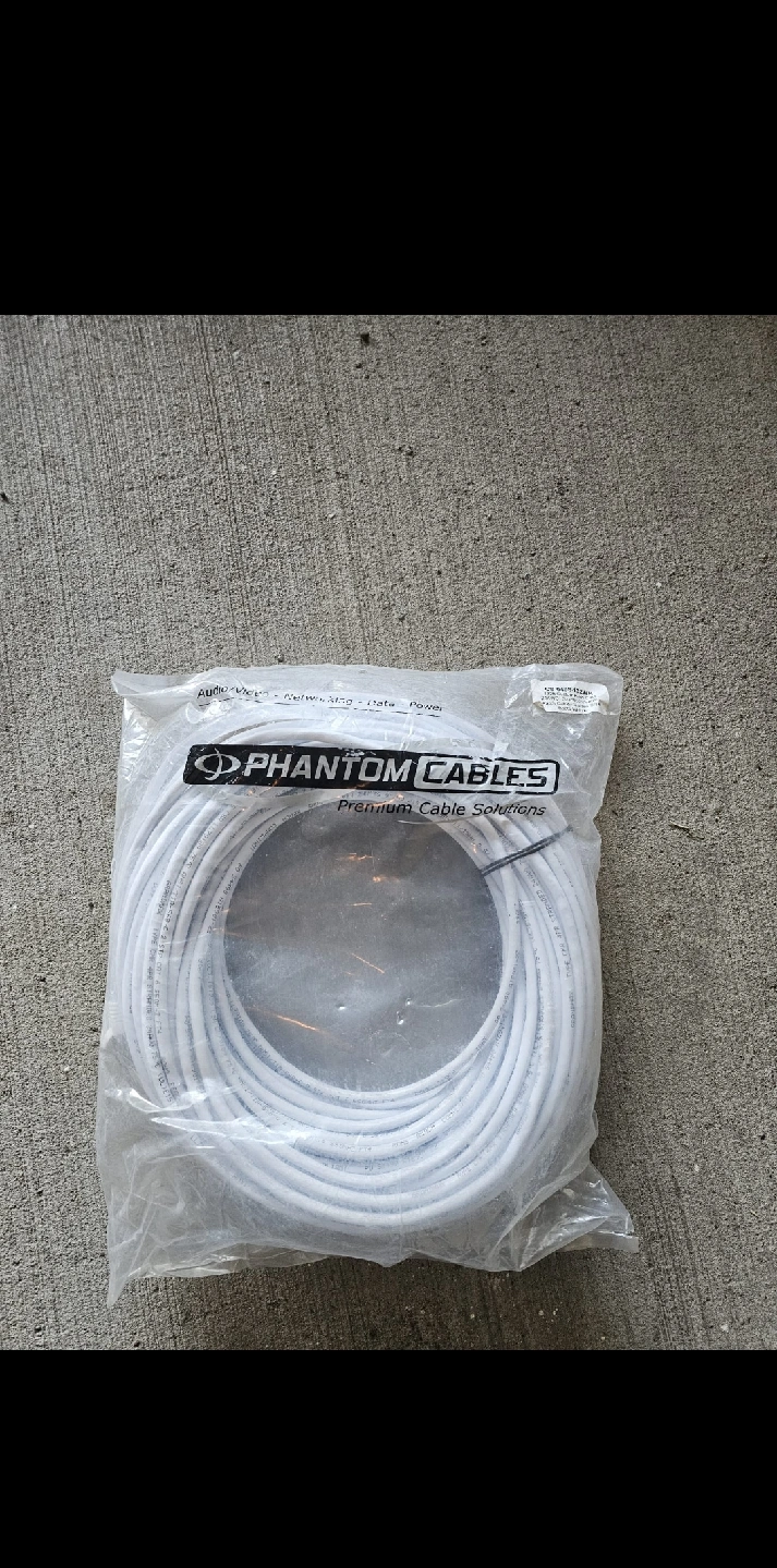 10Selling a 132ft Custom RJ45 Cat6 Patch Cable from Phantom Cables. It's a 24AWG Stranded Shielded Patch Cable with a Molded Style. The cable is white. 4 cables in total.