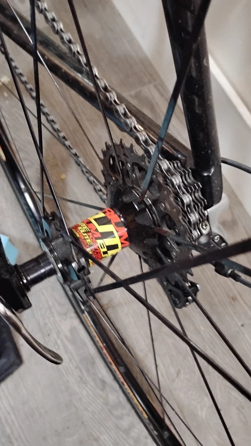 There is a mild issue, the bars were swapped out with mountain bike bars and the pedals were swapped out my idea was to set it up for city riding but the angles aren't ideal for that kind of writing this is really just a great road bike the wheel set alone is easily worth the asking price I just need it gone as I'm now in an apartment and I don't have room for it please check my other listings as well. This frame was a pre production R&D unit, so there is no serial #, there is a recessed pad, I put my name and address and phone number in the seat tube in case of theft for speedy recovery. Speaking of theft, the seat and seatpost were stolen or misplaced at some point so my son fitted a seat with a bushing it's not ideal you will want a proper seat post that said it's still a screaming deal I will try to find the pedals the original pedals and bars in the meantime as is