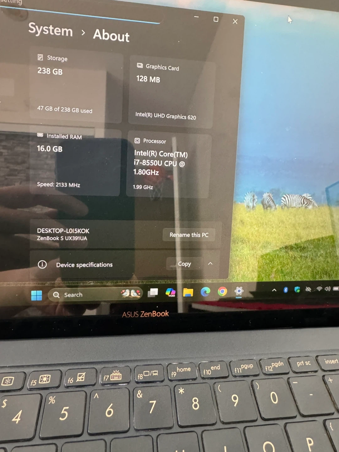 Asus Zenbook S UX391 i7 8565u 16GB RAM 256GB SSD 13.3" Laptop