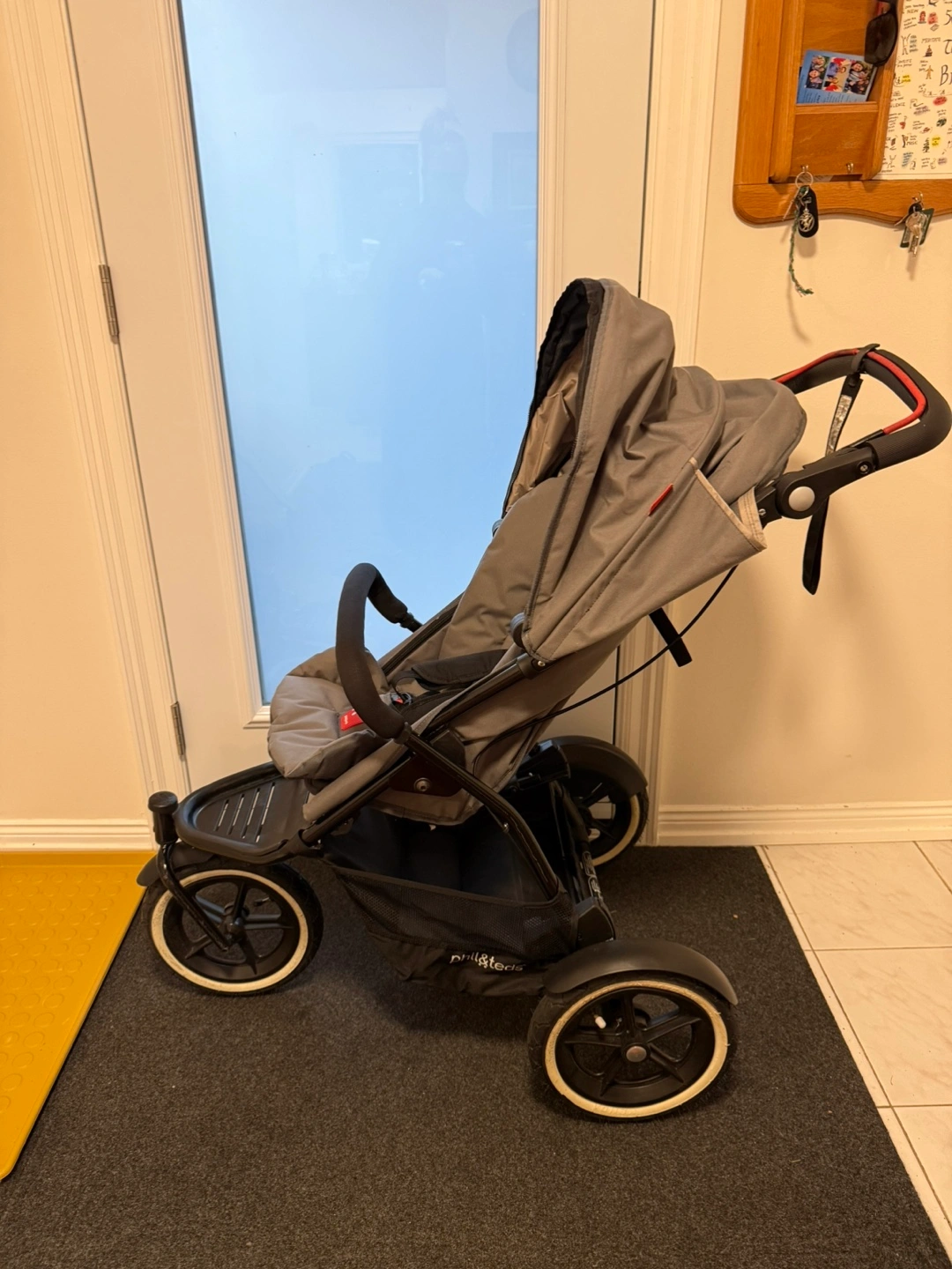 36Selling a Phil&Teds stroller. It's in great condition and ready for a new family! The tires are 12 1/2 x 1.75 x 2 1/4. Selling a Phil & Teds Sport stroller in grey. It's in great condition and ready for new adventures! This stroller is perfect for active families. It has a sturdy frame and comfortable seating for your little one. The large storage basket underneath is super handy for carrying all your essentials! Text 647-524-2423 for quick reply
