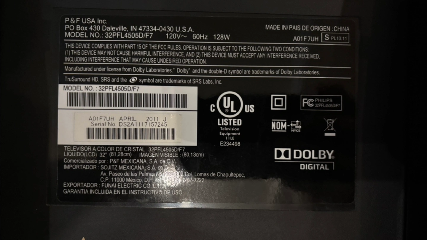 7932-inch Philips LCD television. Includes remote. Good condition. Model number 32PFL4606D/F7.