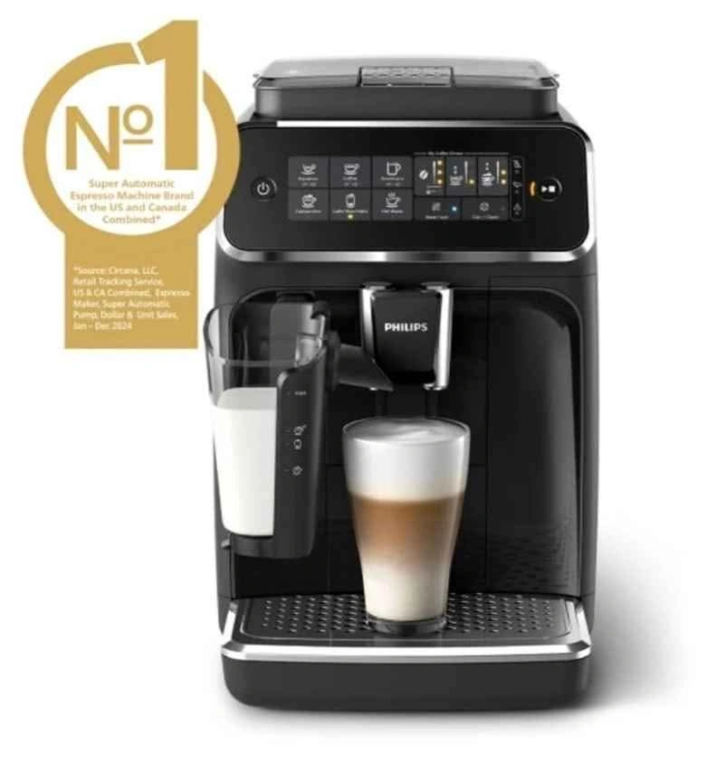 Philips 3200 Series Fully Automatic Espresso Machine, LatteGo Milk Frother, 5 Coffee Varieties, Intuitive Touch Display, 100% Ceramic Grinder, AquaClean Filter, My Coffee Choice, Black (EP3241/54)