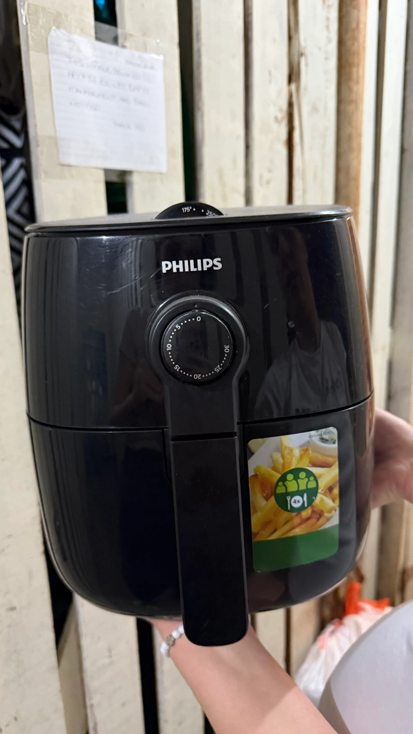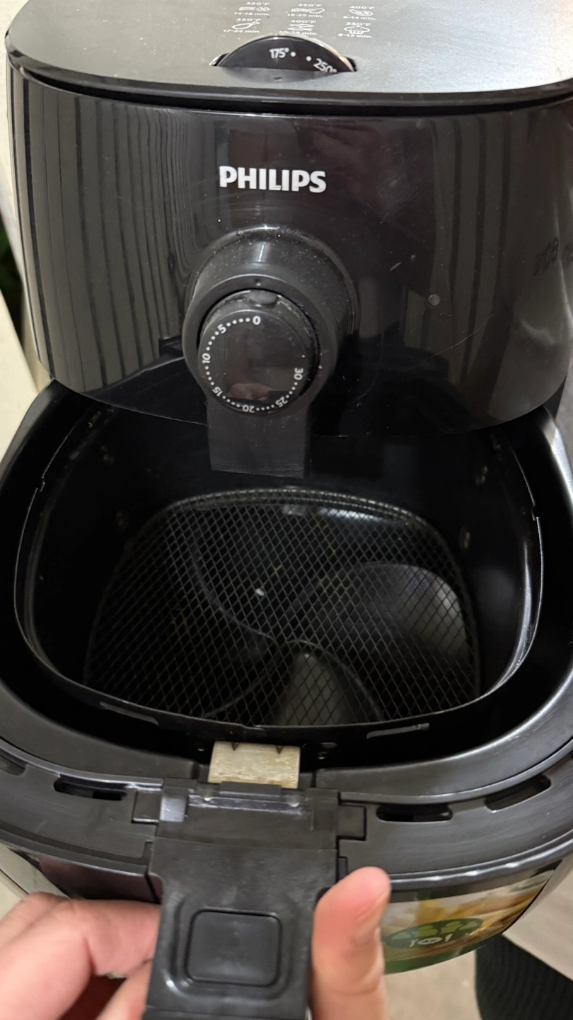 18Black air fryer. Features a dial to adjust cooking time and temperature. Includes a removable basket. Great for crispy fries and other snacks.