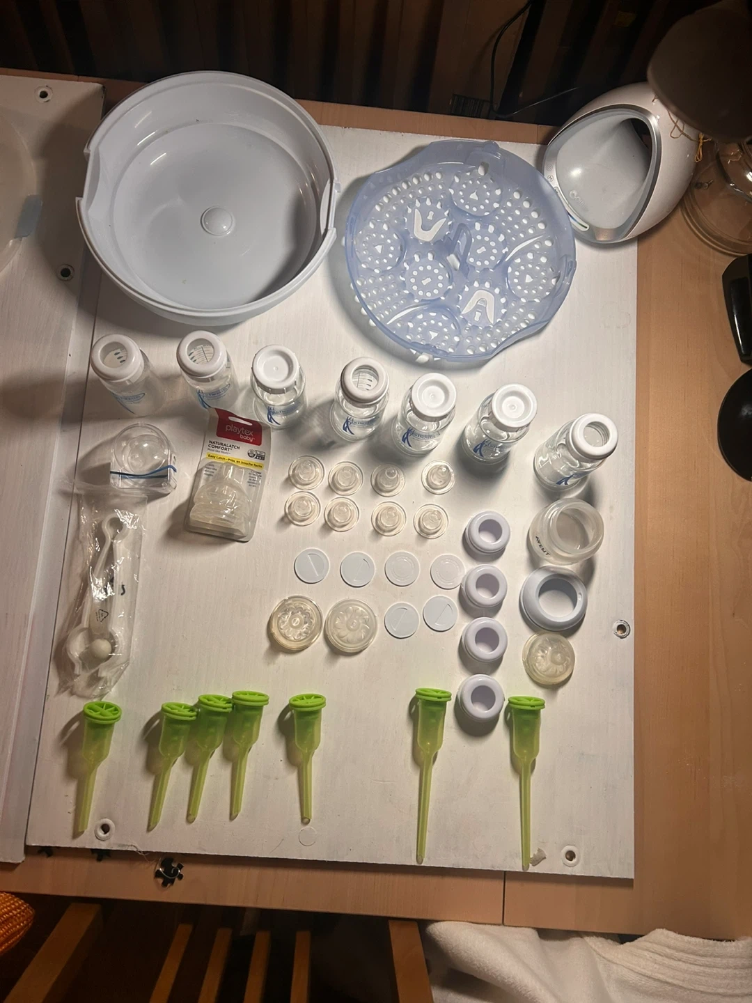 91Selling a Philips Avent baby bottle sterilizer along with various bottle Dr. Braun as well anti Collin 3 for big bottles small 4 glass Acrylic bottles parts and accessories! Includes bottles, nipples, and other useful items for feeding your little one. Great for parents looking to stock up or replace worn-out parts