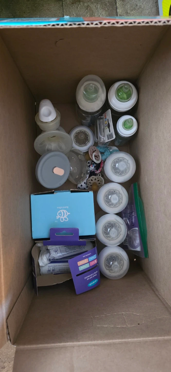 60Selling a Philips Avent Double Electric Breast Pump with Natural Motion Technology! The pump comes with a carrying bag and some accessories. Originally bought for $279.99. I also have a box with Phillips and Dr. Brown bottles, Phillips hand pump, Hakka suction pump and hakka milk catcher. A few bibbs 3-6 month pacifiers and clips. Everything can be boiled to clean. I also have milk bags aswell, everything in a diaper box ready to go