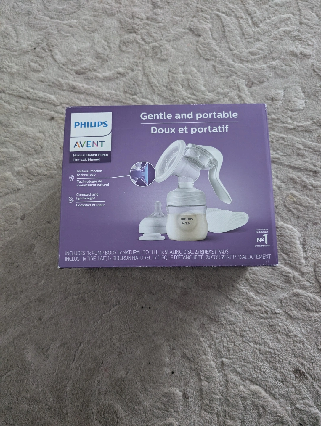 10Selling a Philips Avent manual breast pump. It's gentle and portable, perfect for moms on the go! Includes the pump body, a natural bottle, sealing disc, and two breast pads. Compact and lightweight for easy use and travel