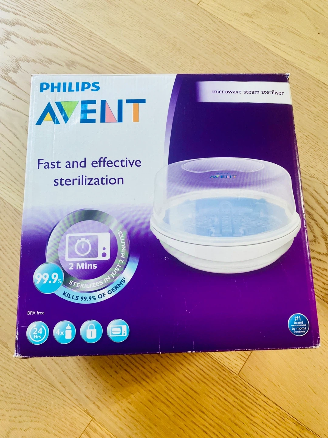 Selling a Philips Avent microwave steam steriliser! It's in great condition and ready to use. This steriliser is fast and effective, killing 99.9% of germs in just 2 minutes. It's also BPA free and can hold up to 4 bottles. Perfect for keeping your baby's feeding equipment clean and safe!