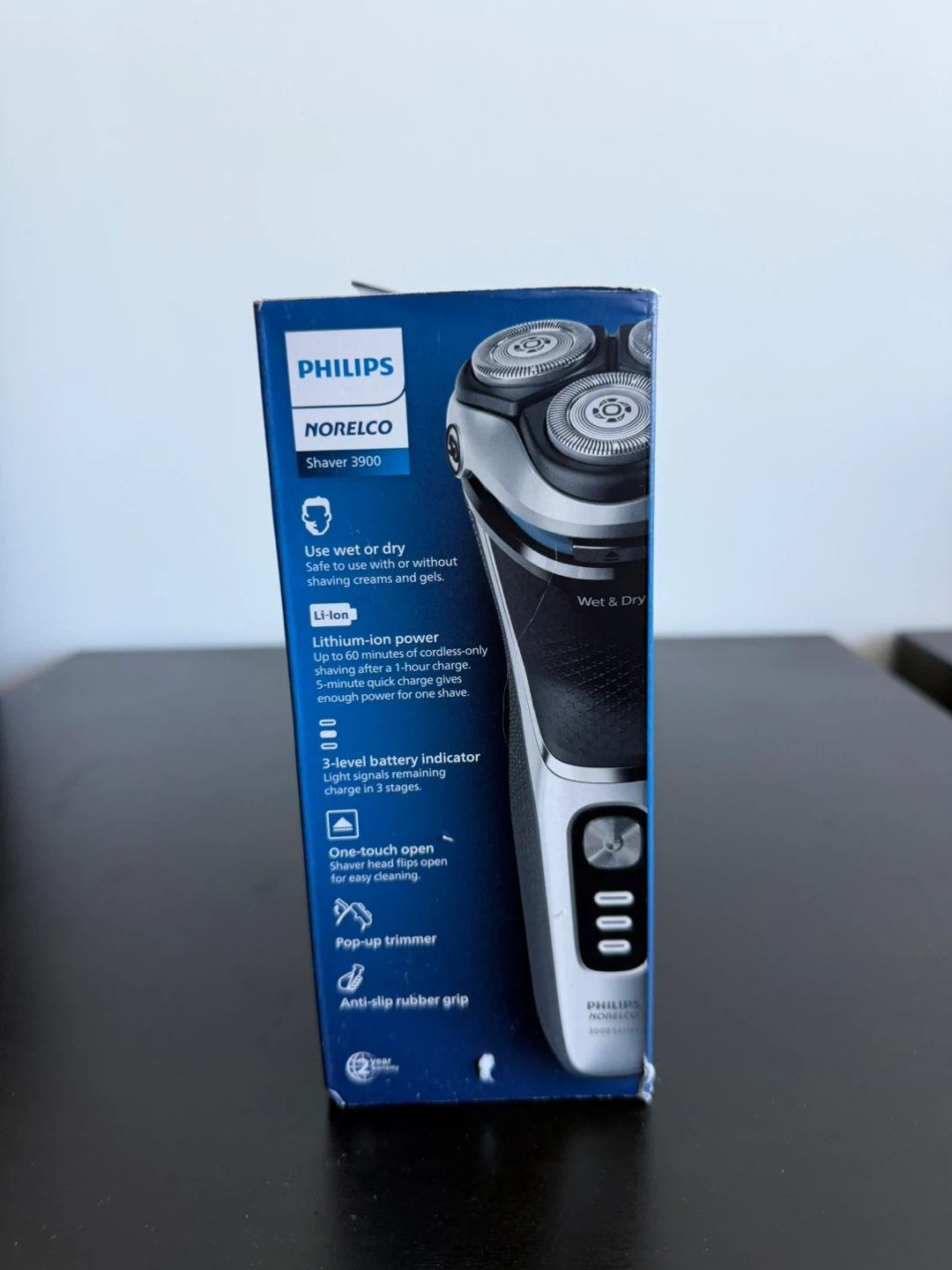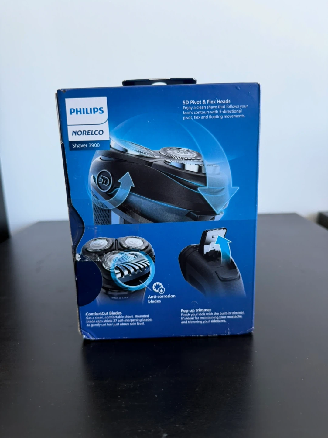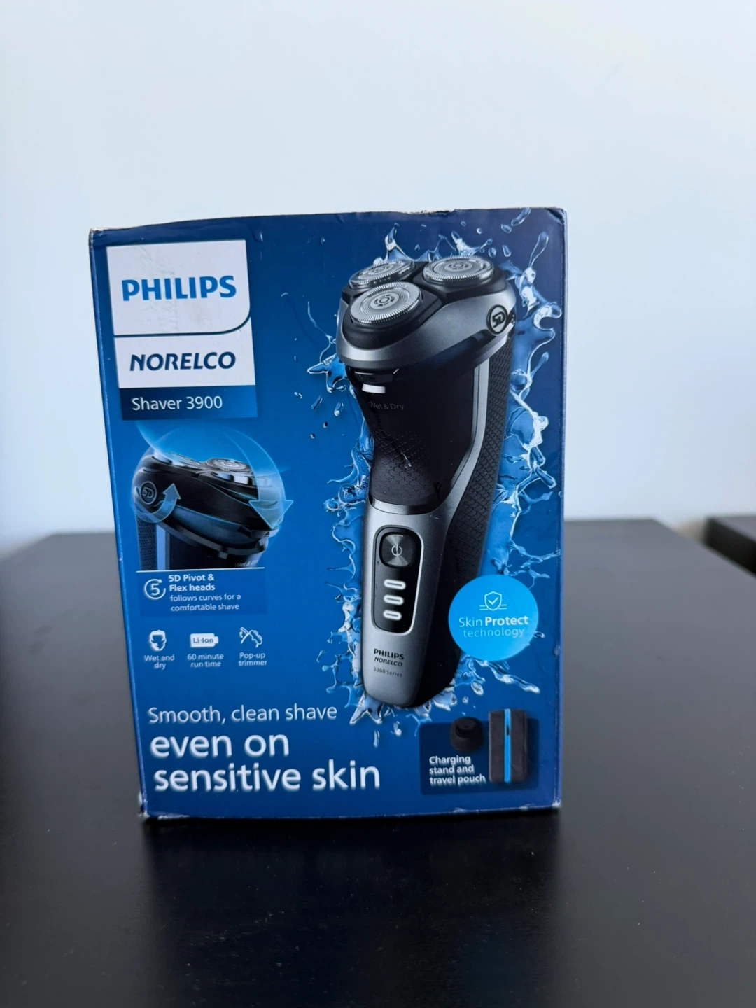 Philips Norelco Shaver 3900 Wet/Dry Electric Razor – 5D Pivot, Pop-Up Trimmer, Boxed Pickup Location: Downtown Toronto (near Eaton Centre) Enjoy a smooth, comfortable shave even on sensitive skin with the Philips Norelco Shaver 3900. 5D Pivot & Flex Heads adjust to your face’s contours. Can be used wet or dry with creams or gels. Rechargeable lithium-ion battery gives up to 60 minutes of cordless runtime. Includes pop-up trimmer for sideburns and mustache. Product Details: - Model: Philips Norelco Shaver 3900 (S3941) - 5D Pivot & Flex Heads adapt to curves - ComfortCut blades—rounded tips, 27 self-sharpening blades - Anti-corrosion, easy-clean blades - Up to 60 min cordless runtime per charge (Li-ion battery) - 5-min quick charge for single shave - Wet & dry use: safe with shave creams/gels - Pop-up trimmer for maintaining sideburns, mustache - 3-level battery indicator - One-touch open for cleaning - Ergonomic anti-slip grip Included in Package: - Electric shaver handle (fully functional, gently used) - Charging stand + USB-A cable - Protective cap - Travel pouch - Original retail box and manual Retail price: $79+ tax at Amazon for a new boxed unit.