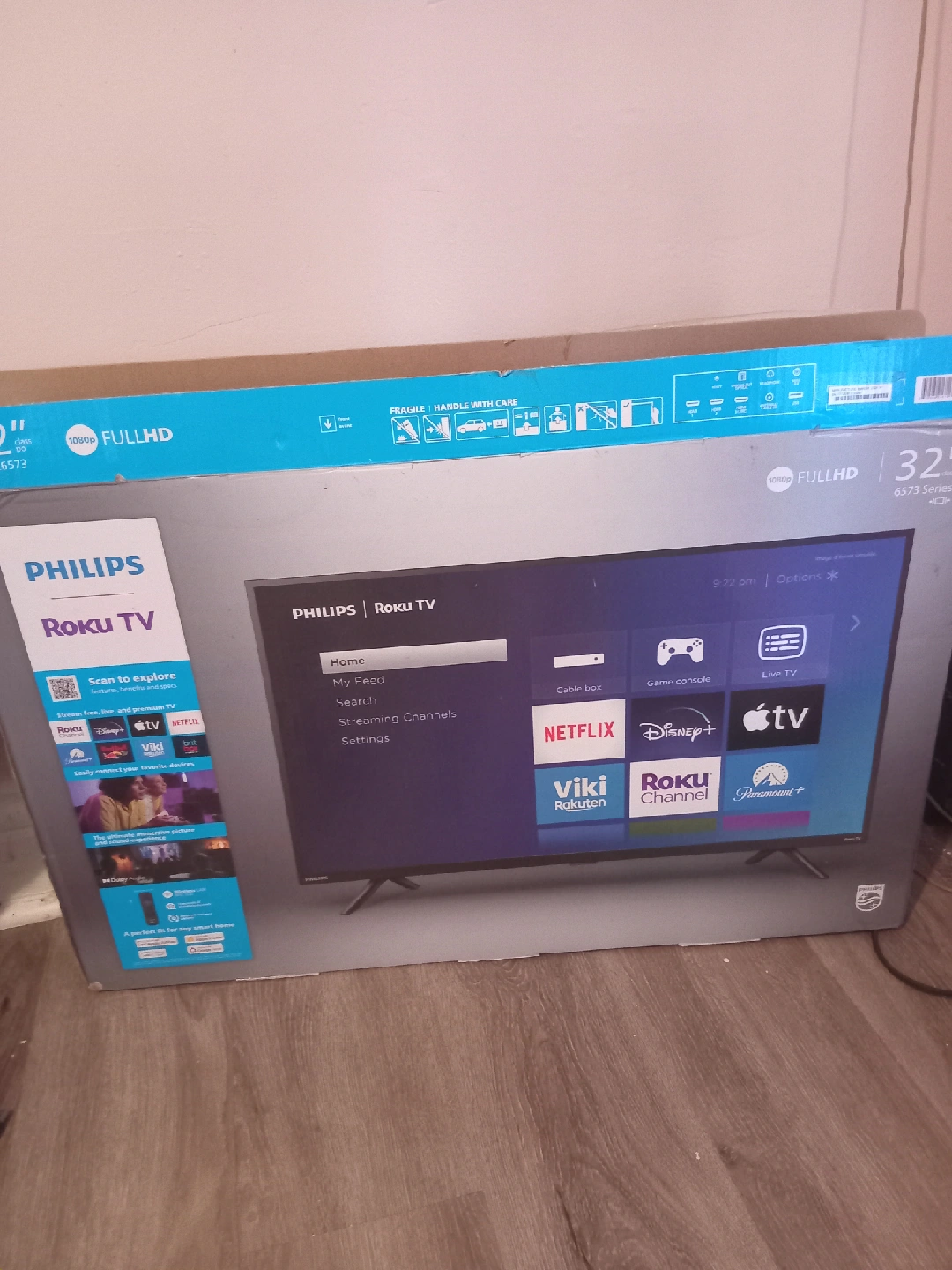 Selling a Philips Roku TV, 32 inch, from the 326573 series. It's a Full HD 1080p TV. The box is included!