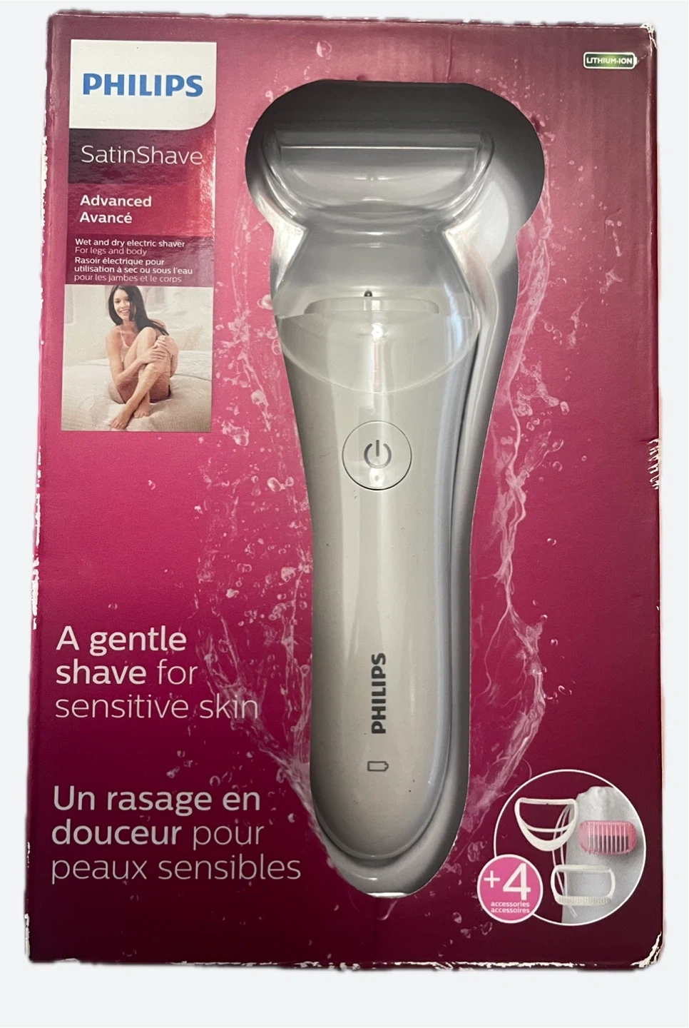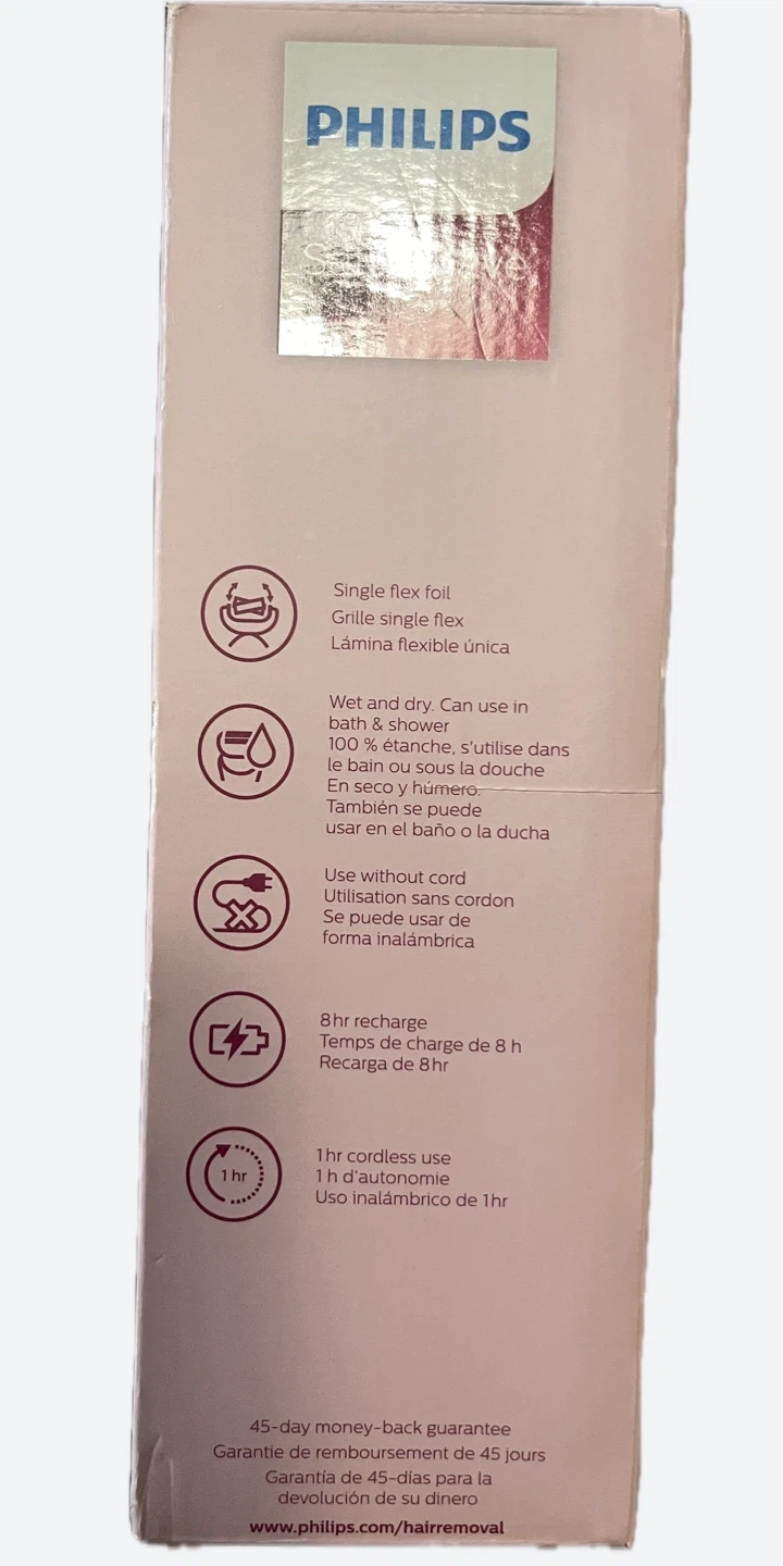 Get a gentle shave for sensitive skin with this Philips SatinShave Advanced shaver! It can be used wet or dry, in the bath or shower. Experience less cuts and irritations with the floating foil and pearl-tip trimmers. The ergonomic handle makes it easy to steer for comfortable use. Comes with trimming comb, skin stretcher cap, soft glide cap and pouch