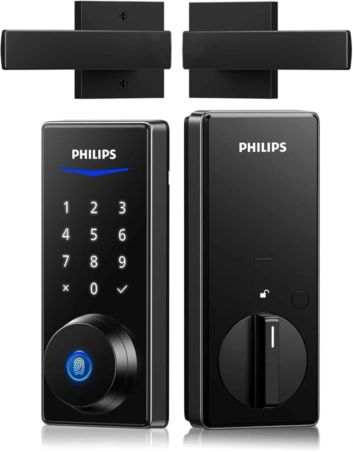 38Selling a Philips smart deadbolt lock. It features PIN code unlocking, support for 20 user codes, and includes 2 mechanical keys. The lock also boasts fingerprint unlocking with 0.3s biometric identification and a 99.9% recognition rate. It's designed for long battery life, with a backlit keypad and low battery alarm.