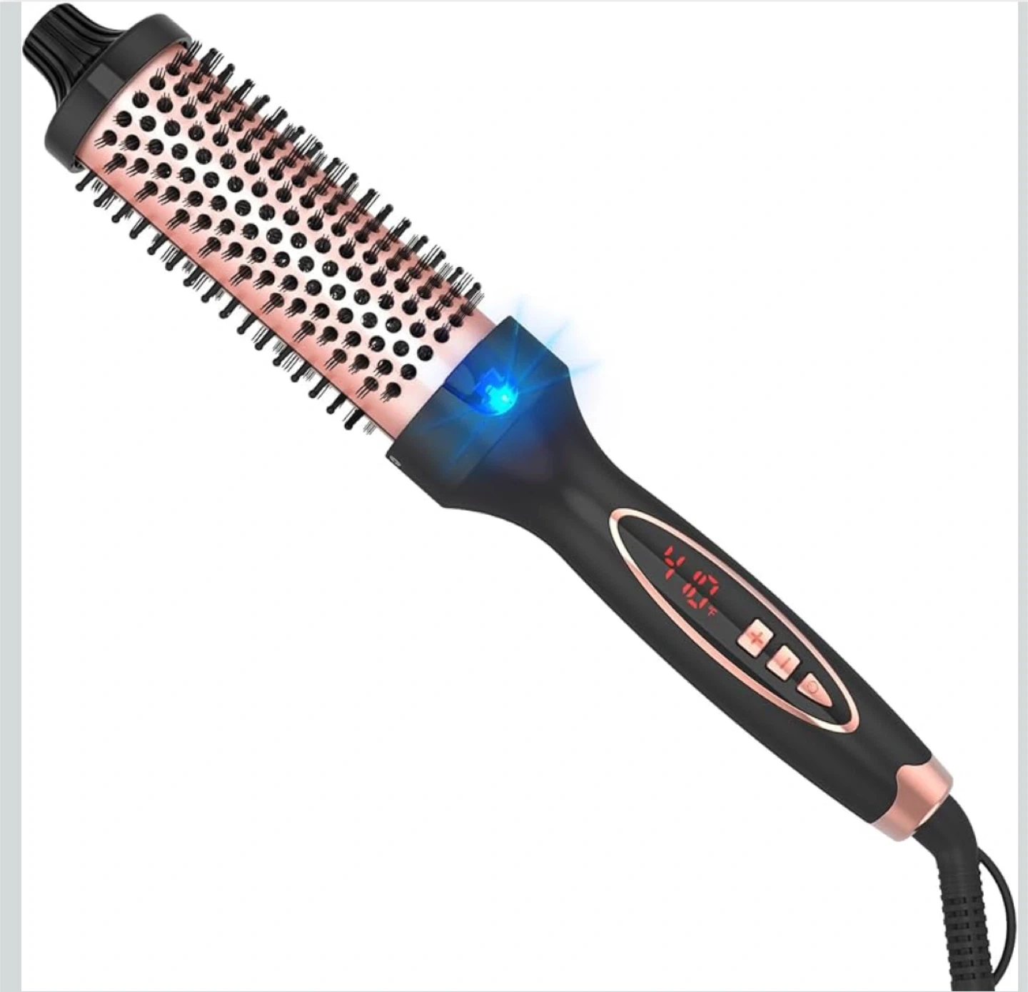 Get ready to create loose and voluminous curls with this PHOEBE thermal brush! It features a digital display and 9 heat settings, so you can customize it to your hair type. It also has tourmaline ionic technology and dual voltage, making it perfect for travelling. Plus, it heats up quickly in just 30 seconds!