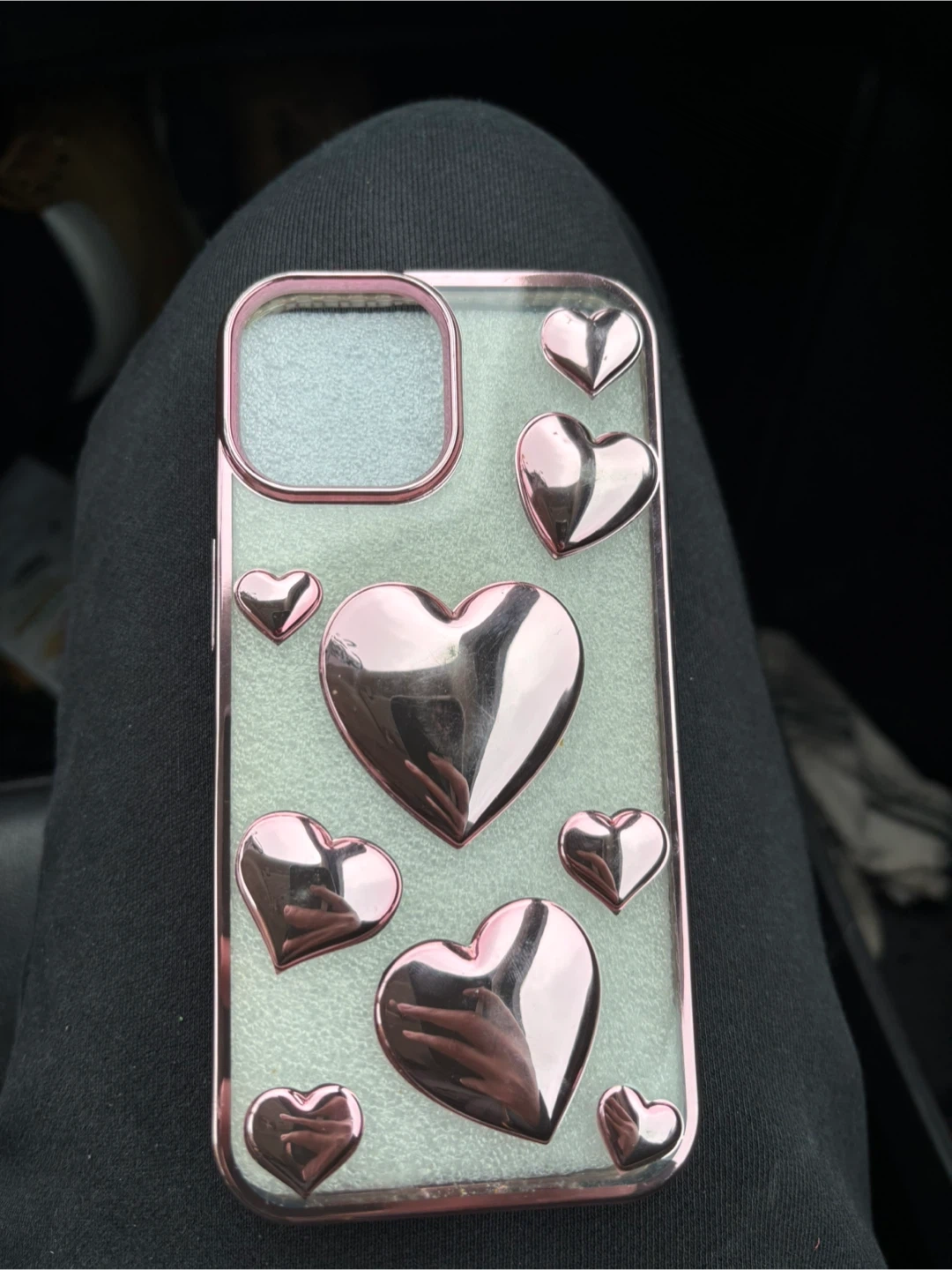 Selling a phone case with a super cute heart design! It's in great condition and would be perfect for anyone who loves a bit of sparkle.