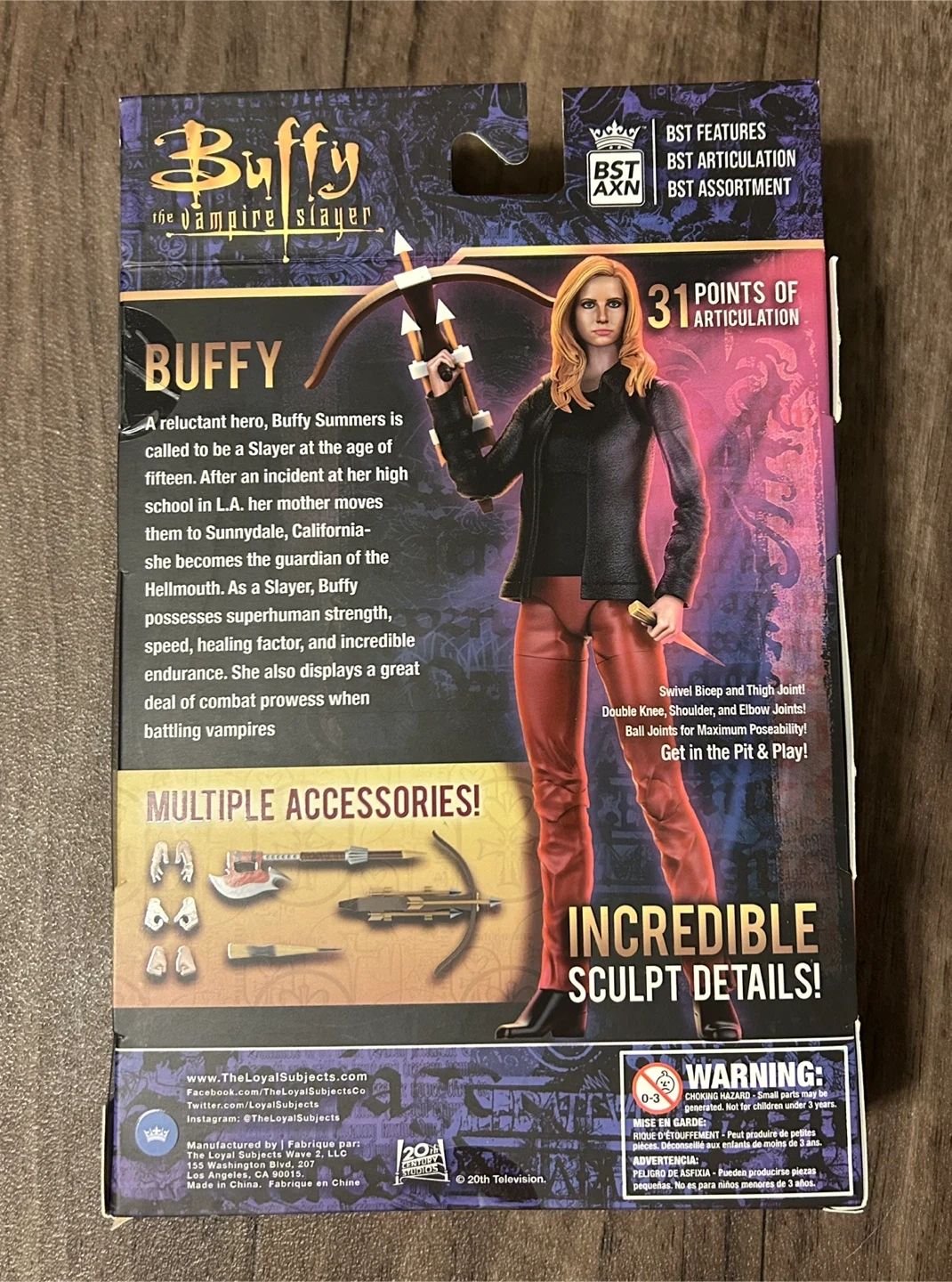 This is a Buffy action figure from Buffy the Vampire Slayer. It features BST AXN articulation and comes with multiple accessories. Recommended for ages 8 and up.