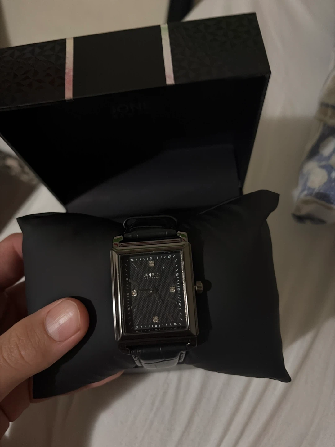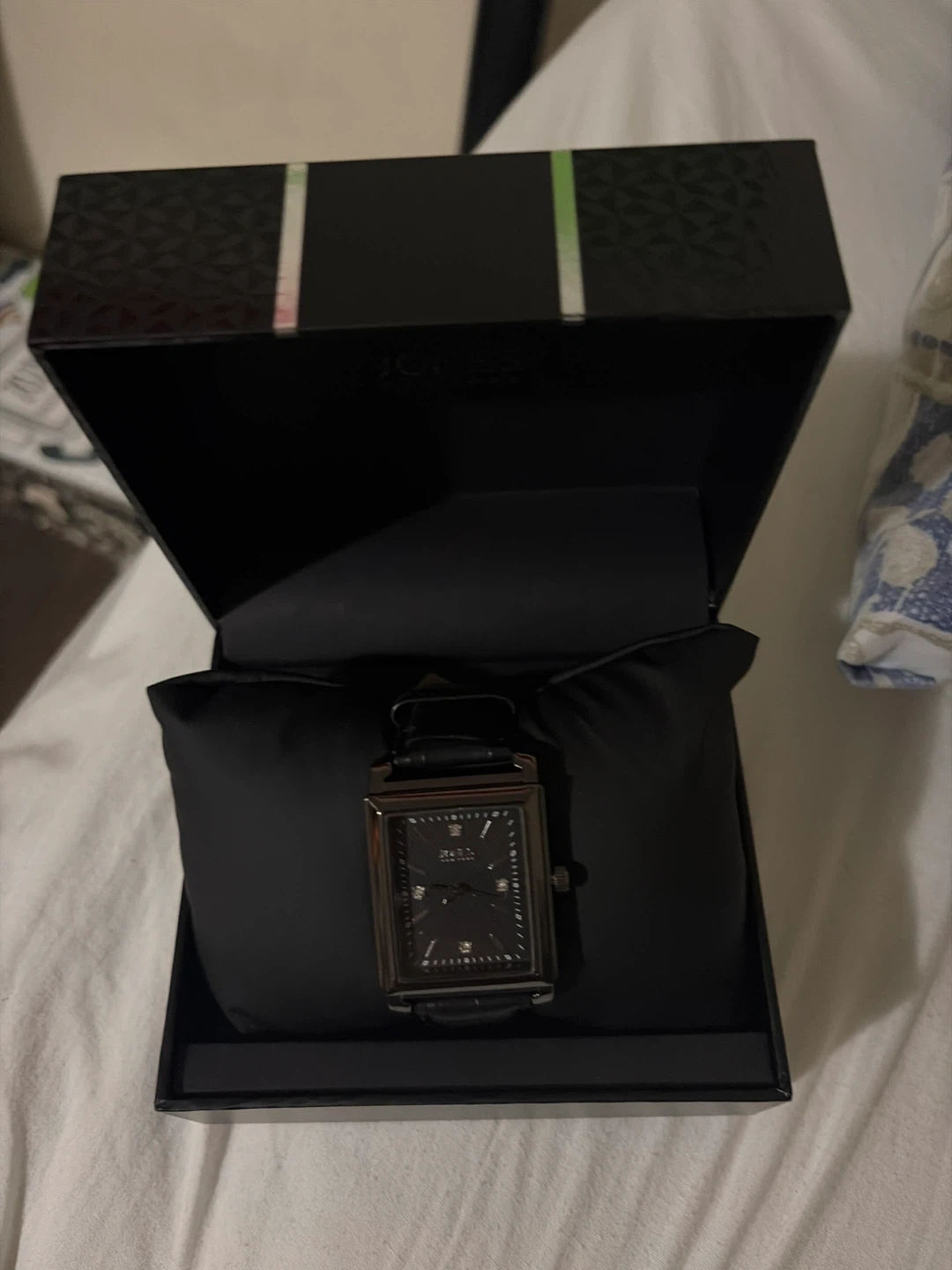 Selling a Jonas & Verus watch with a rectangular dial! It comes with its original box and packaging. The watch features a sleek black design and is in great condition. Perfect for adding a touch of sophistication to any outfit!