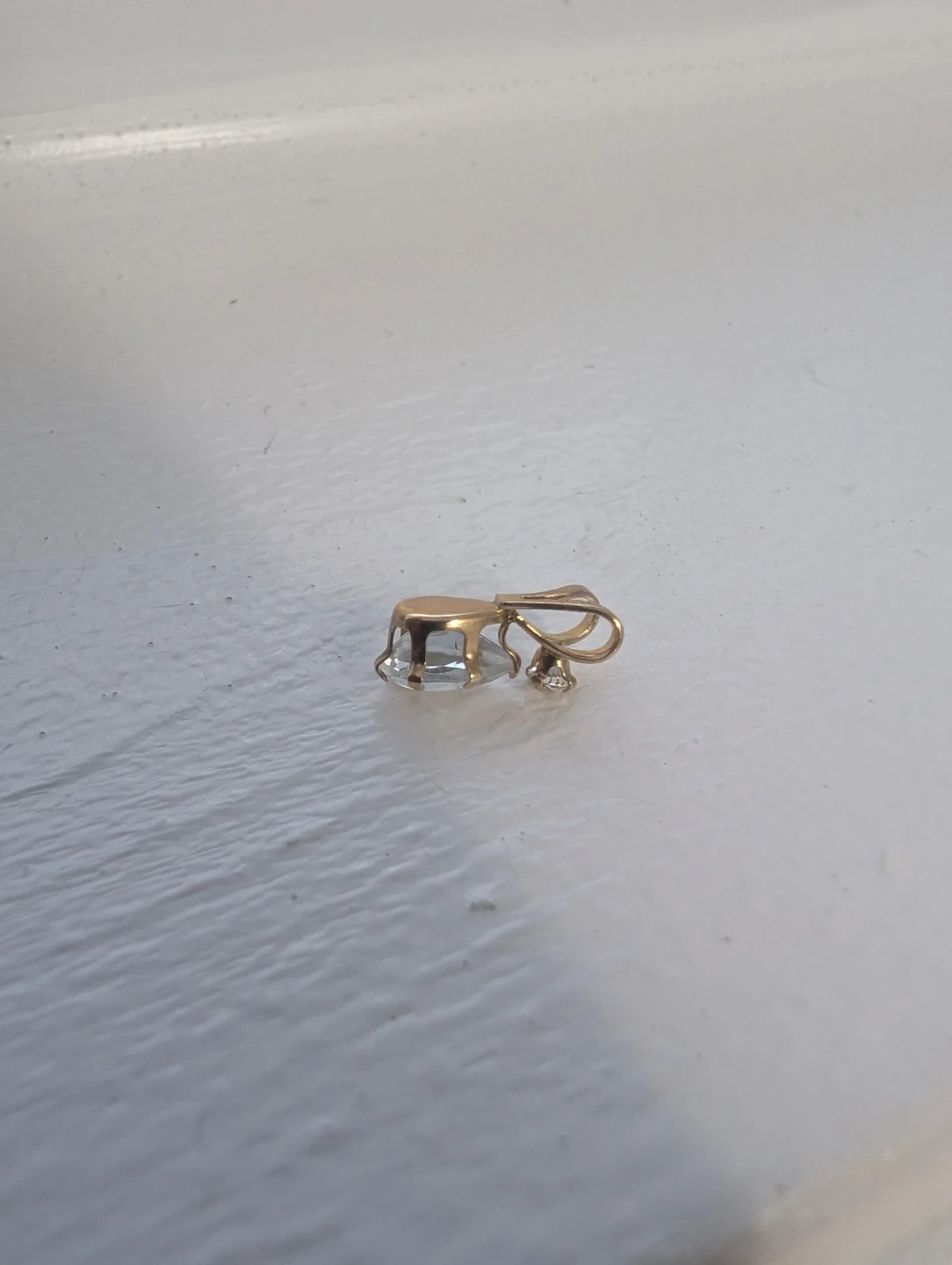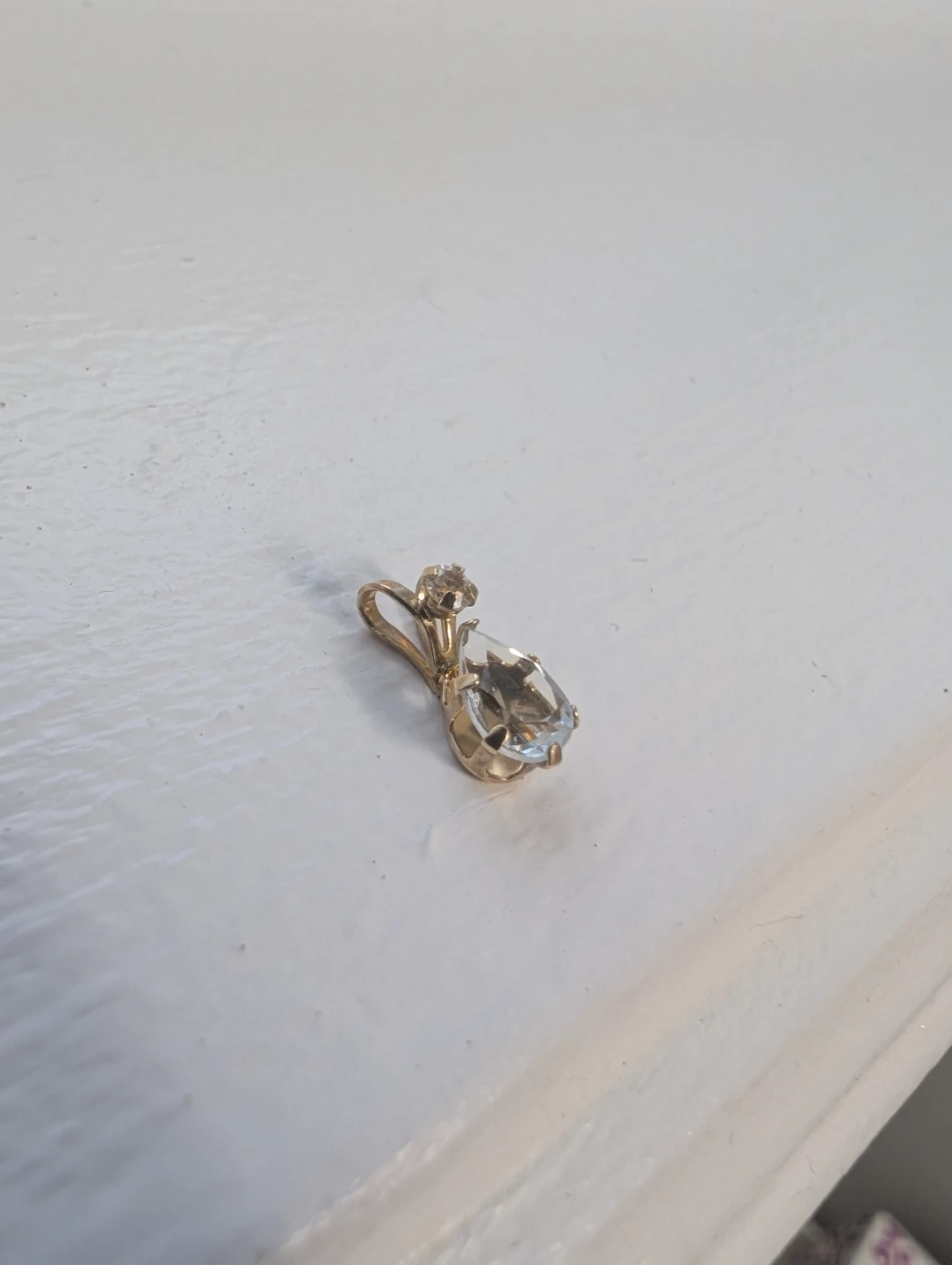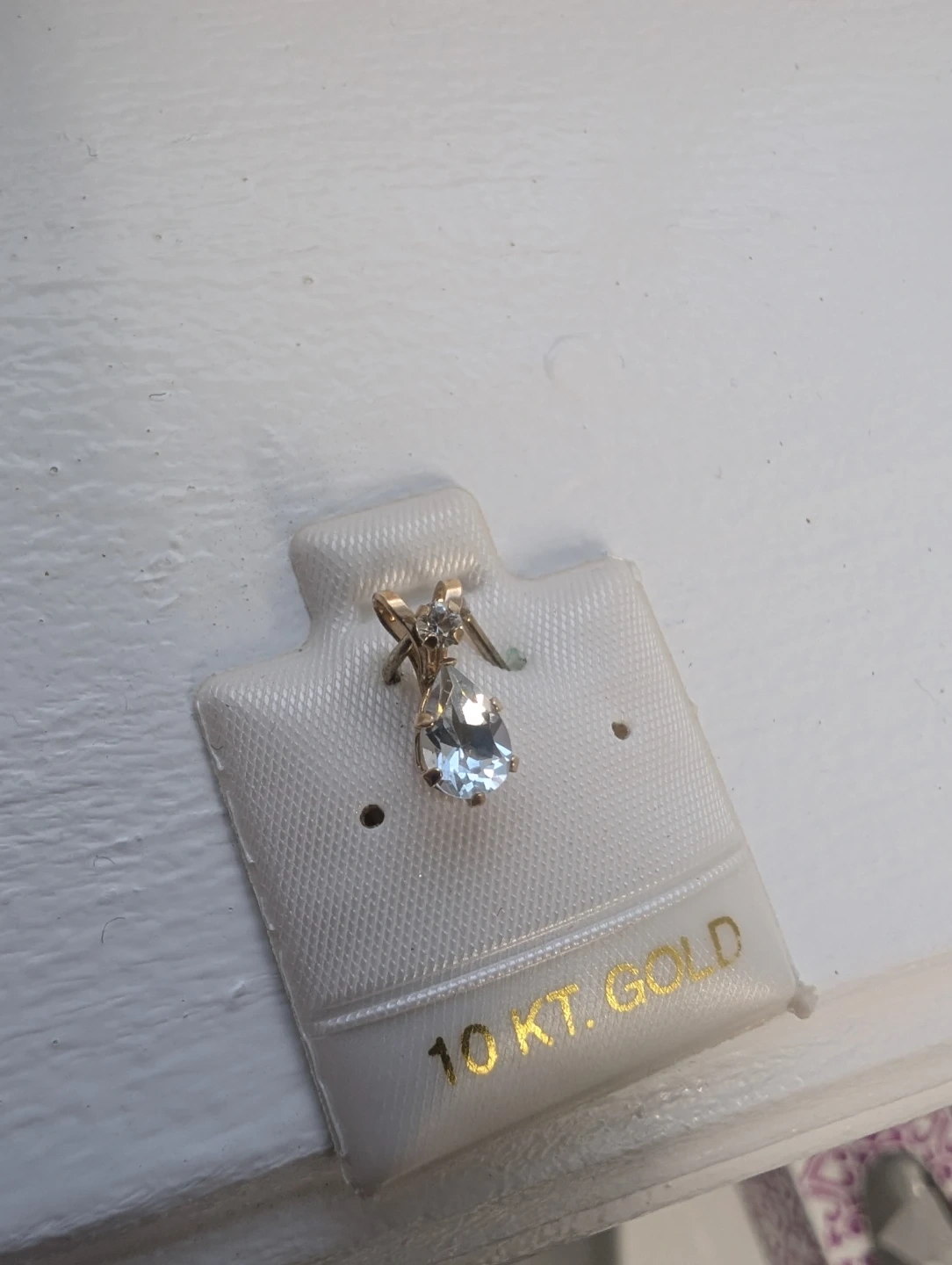 Brand new 10kt yellow gold aquamarine gemstone necklace pendant for sale. Genuine aquamarine gem stone pendant, 0.55ct carats, March birthstone, made in Canada, $80 FIRM.