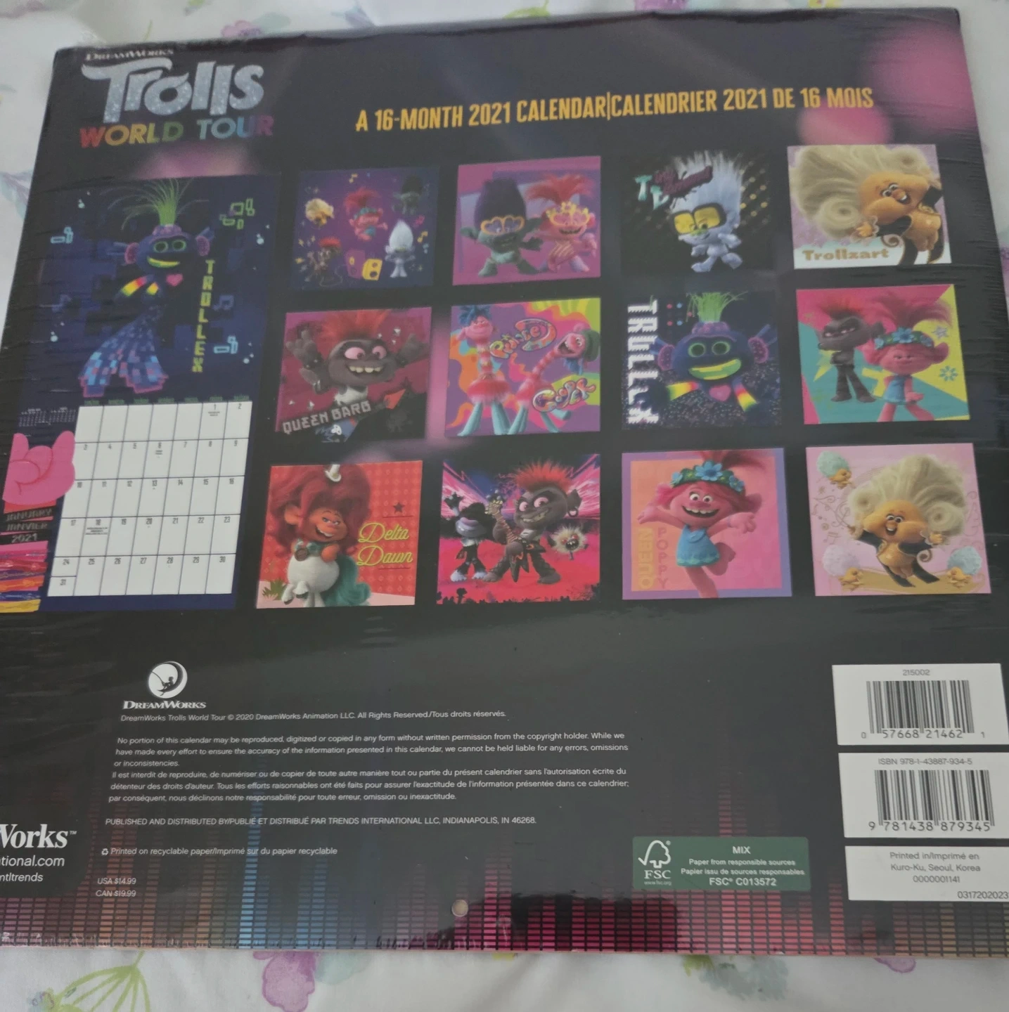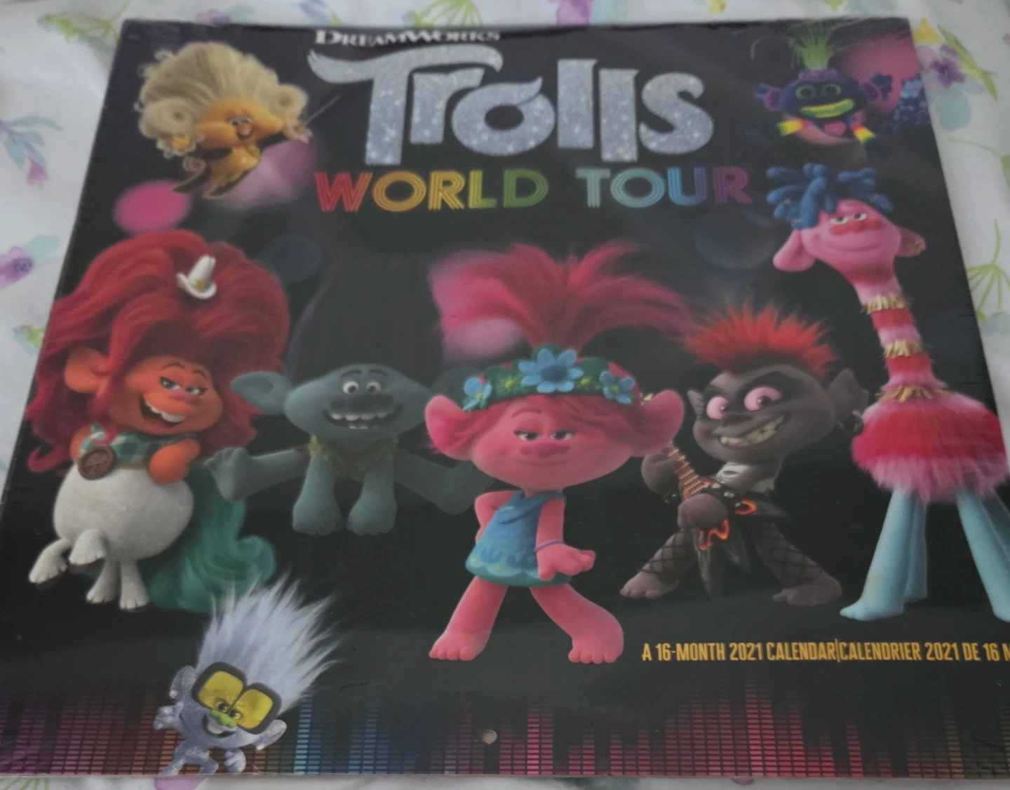 Get organized with this fun DreamWorks Trolls World Tour 16-month calendar. It features characters from the popular movie. This calendar runs from August 2020 to December 2021.