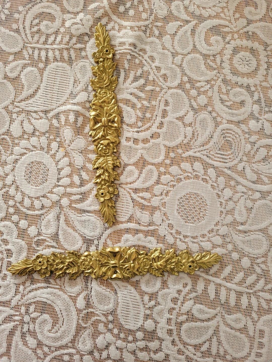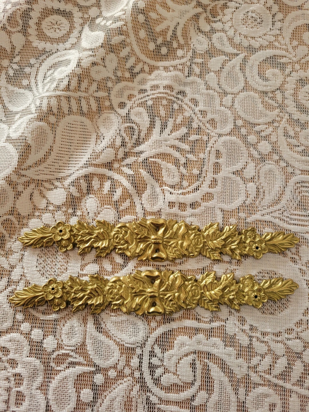 These items are vintage brass rose and bow ormolu decorative appliqués, originally sold by the Bombay Company.