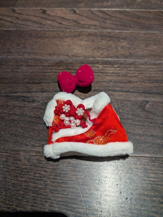 Chinese New Year Outfits for your Labubu. My Daughters ordered too many and would like to sell off the ones posted here. There are 3 styles to choose from. Each one is $13 each. Pick up is in the Toronto Beaches area, near Woodbine Ave and Kingston Rd, close to Norway Public School. Condition: New. Payment: Cashless payment, Cash accepted. It does not include the Labubu.