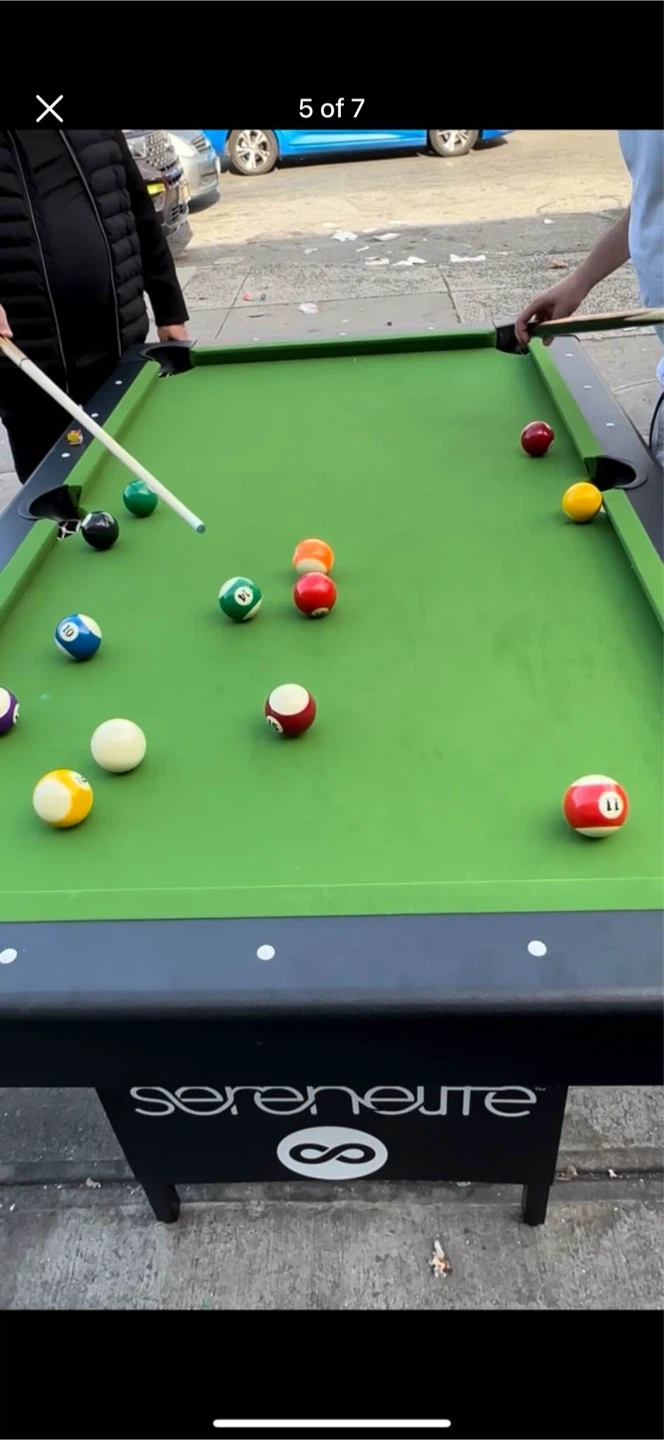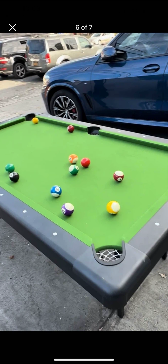 Used pool table comes with everything it’s 8x5 very fun fit on apt or house for late night play party it cost $799 new I’ll sale it for 300