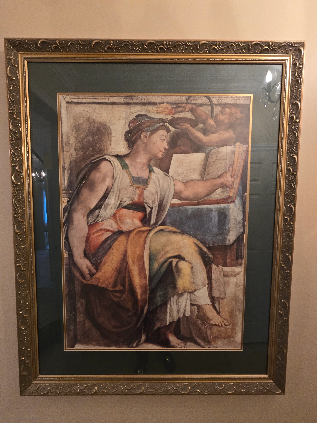 Large Picture with glass and gold frame. Size: Length : 48 inches width: 38 inches