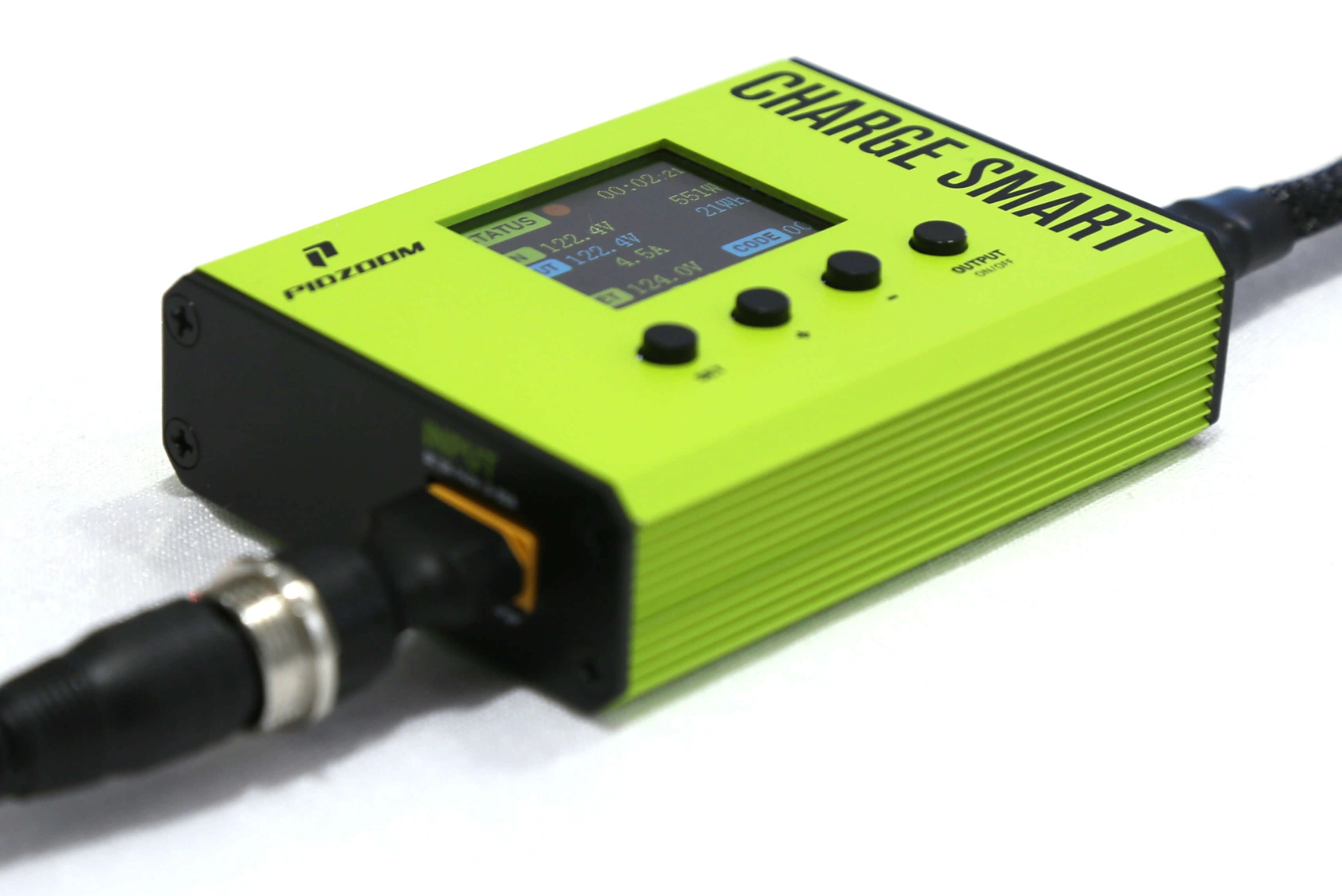 5Charger enhancer for charging electric scooters, bikes, skateboards, ect. It offers effortless monitoring of charging information, customized charging limits for long battery life and storage, and enhanced safety features including auto-disconnection to prevent overcharging and protect against charger failure. Includes GX16-3 adapter which is compatible with Vsett 10, Mukuta, EVOLV scooters, Wolf King, and KingSong 14. Adapters for other vehicles are also available to purchase.
