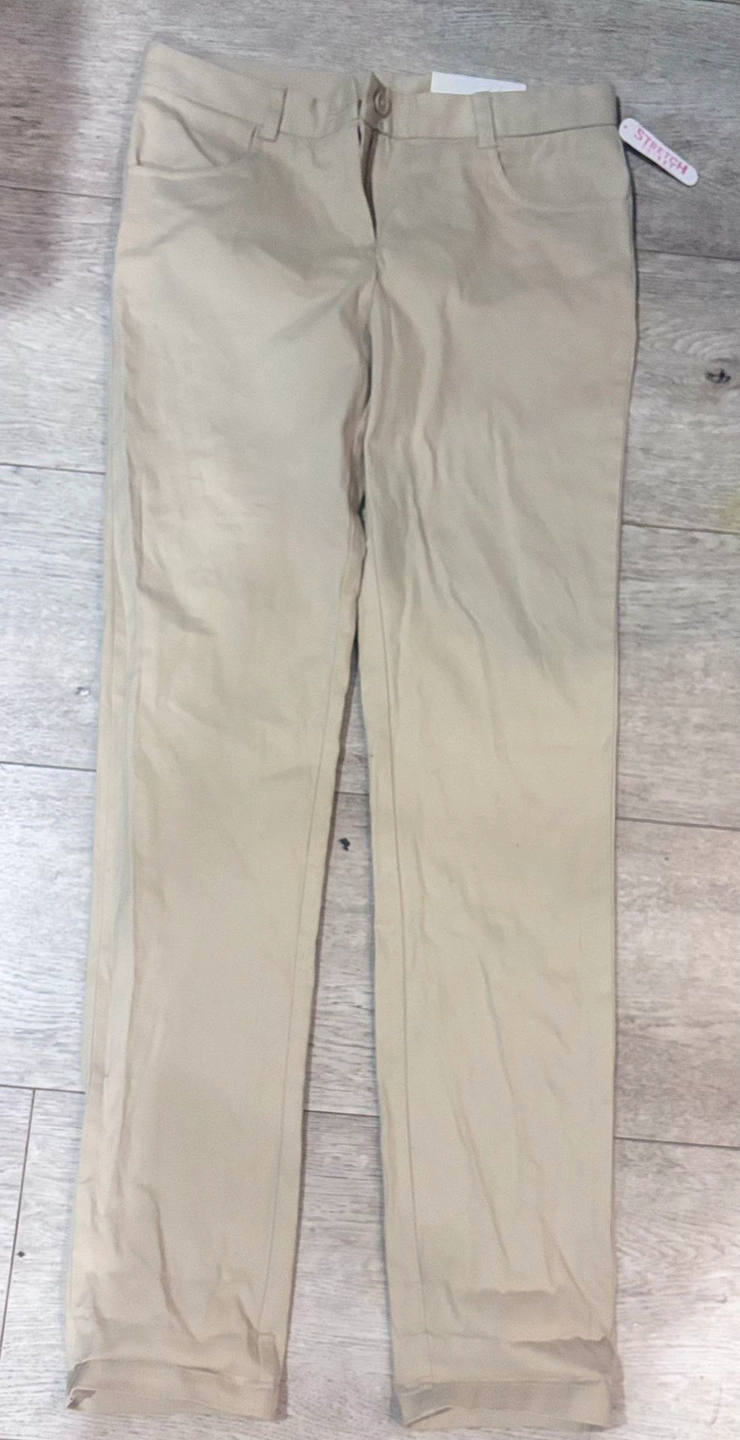 Brand new IZOD Approved Schoolwear khaki pants in Size 7 Regular. Features a stretch skinny fit that’s comfortable, flexible, and polished—perfect for school uniforms or everyday wear. Measures 14 1/2 waist and 39 inches in length. Made with easy-care fabric designed for durability and all-day comfort. Neutral khaki color pairs easily with uniform tops and shoes. Never worn, still has original tags attached. Brand: IZOD, Size: 7 Regular, Color: Khaki, Fit: Stretch Skinny, Condition: New with tags, School uniform approved, Easy care / wrinkle-resistant.