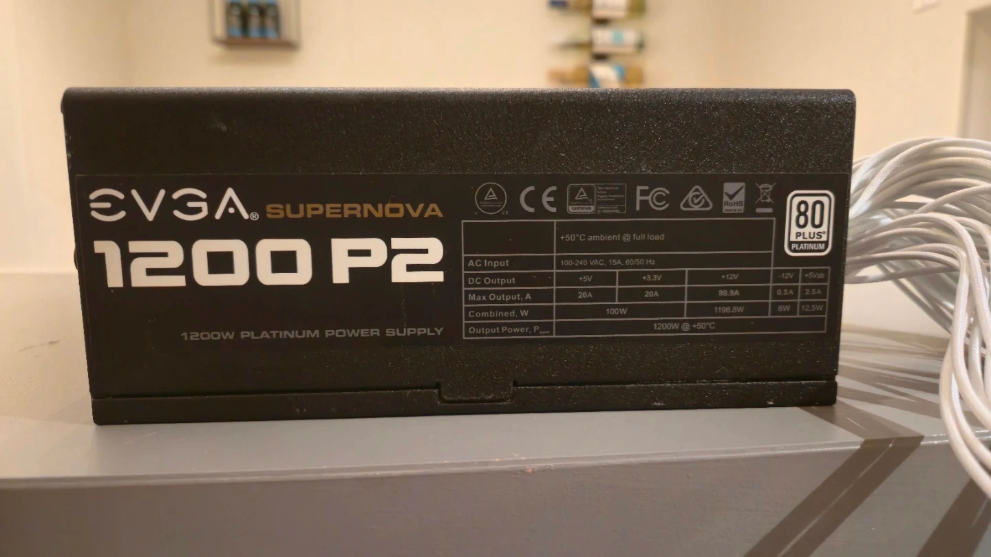 EVGA SuperNOVA 1200 P2 1200W Platinum power supply. Includes all original cables. It's a fully modular power supply. This PSU is rated 80 PLUS Platinum.