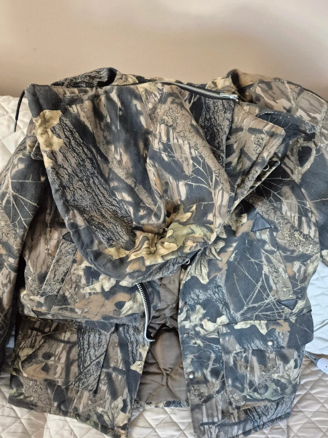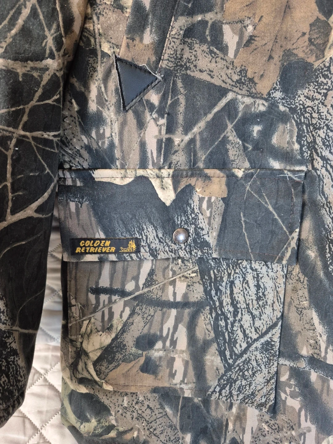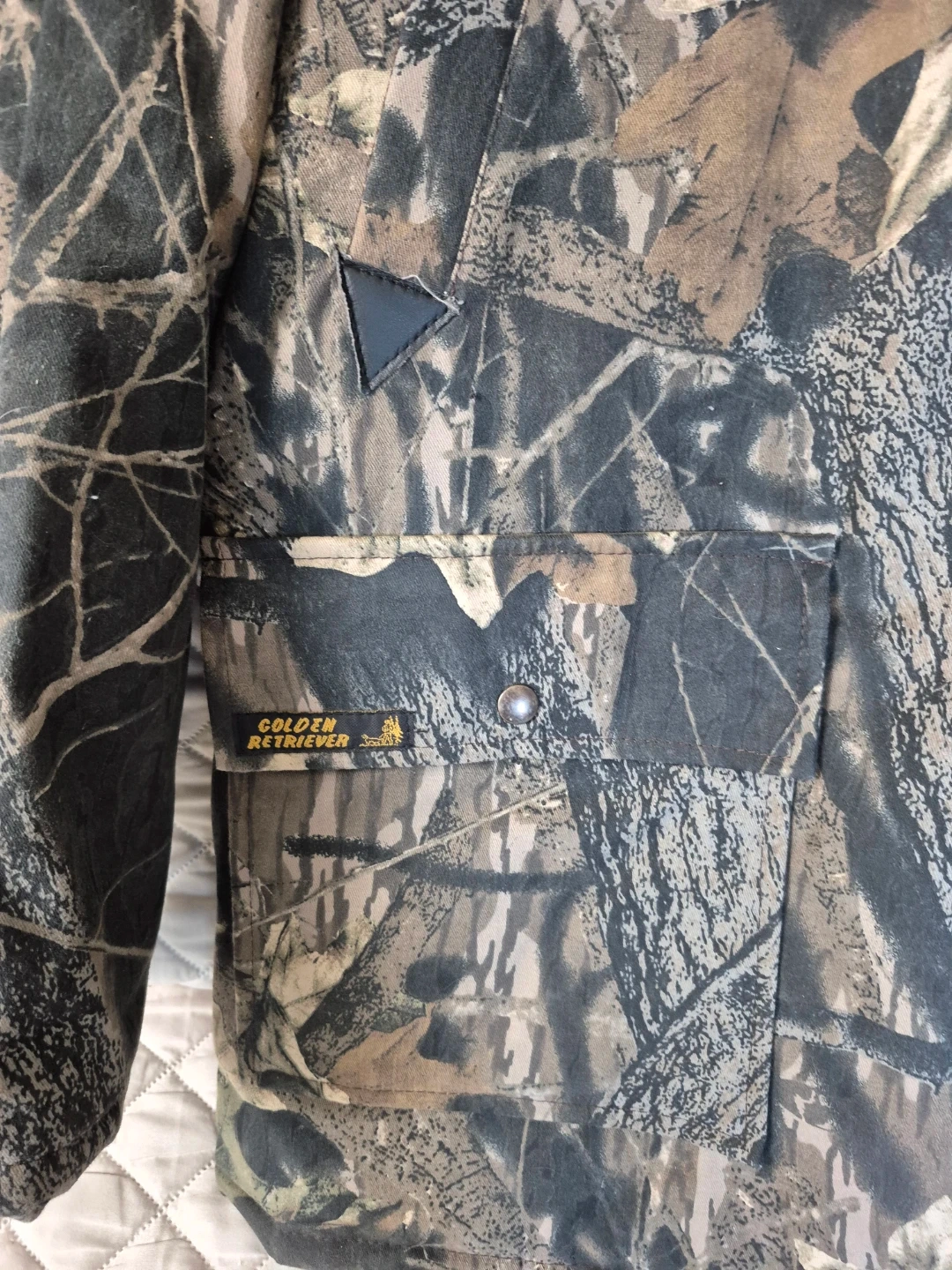 This Golden Retriever outdoor hunting jacket features a full zip front and a hood. In like new condition. Made in Canada.