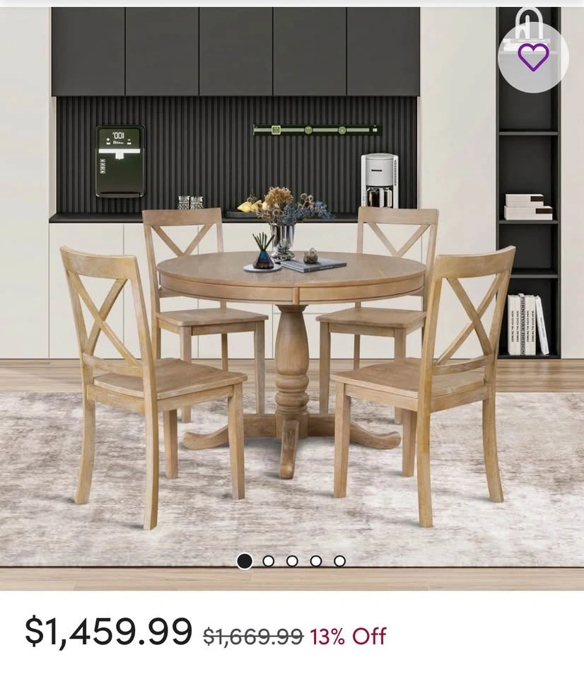 Price: $425 for the set (table and 4 chairs), brand new in box. (Retails for: $1649 with tax; website pics attached).