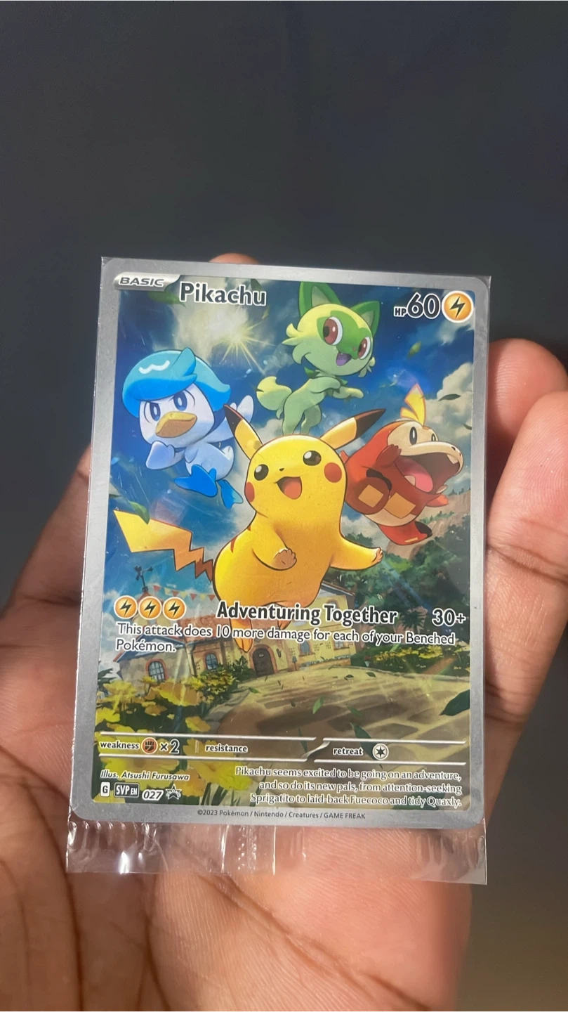 Selling a Pikachu Pokemon card featuring the Adventuring Together artwork! It's in great condition and ready for a new home