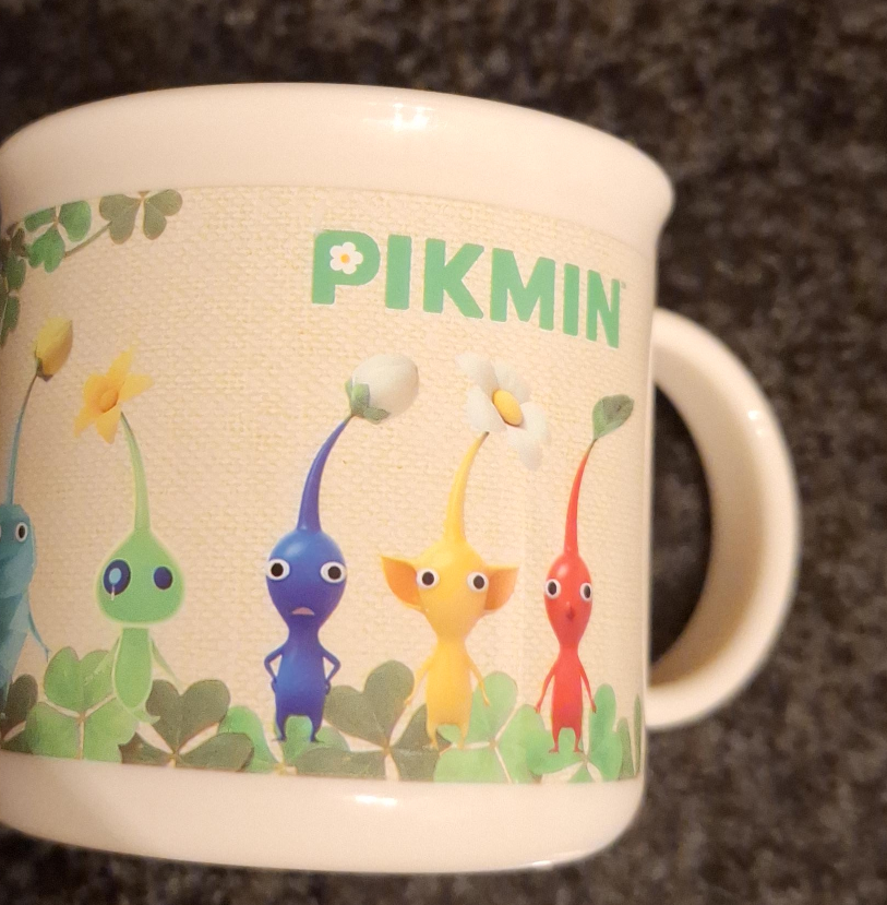 Selling a cute Pikmin mug! It's perfect for any fan of the Pikmin games. The mug features colourful Pikmin characters and a fun design. Add some cheer to your morning coffee or tea with this adorable mug!