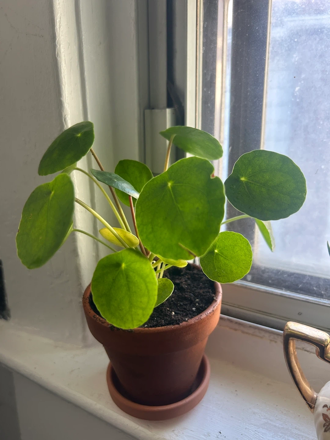 Selling a healthy Pilea peperomioides in terracotta pot, also known as the Chinese Money Plant! This easy-to-care-for plant adds a touch of green to any space. It comes in a terracotta pot and saucer, ready to brighten up your home