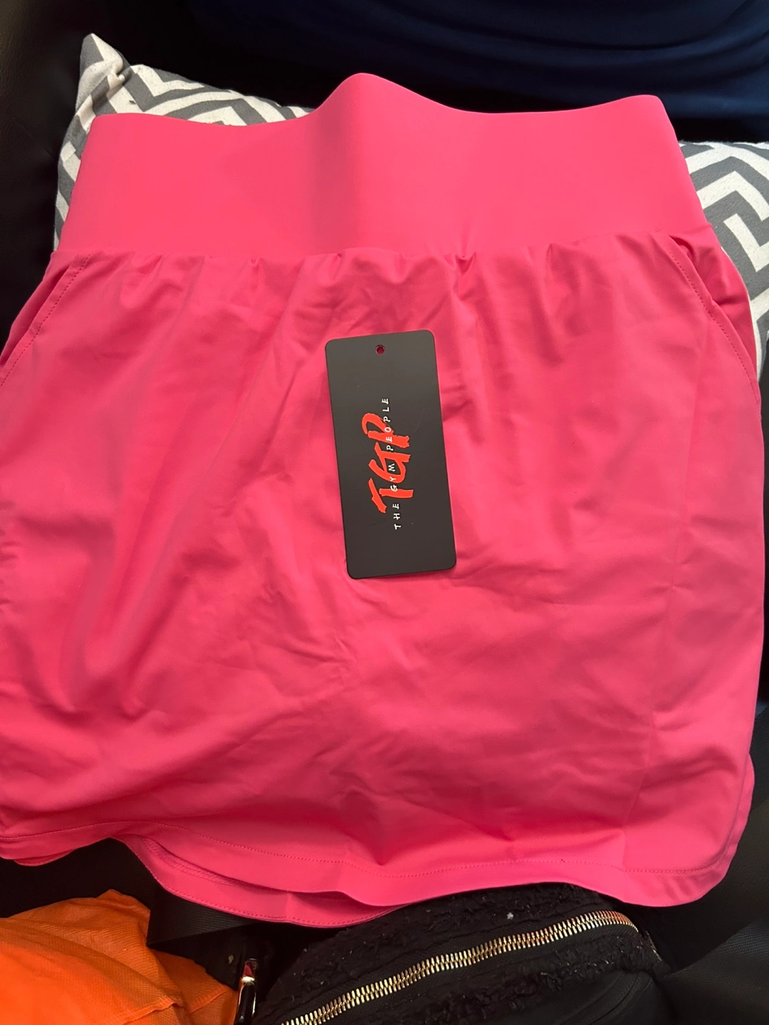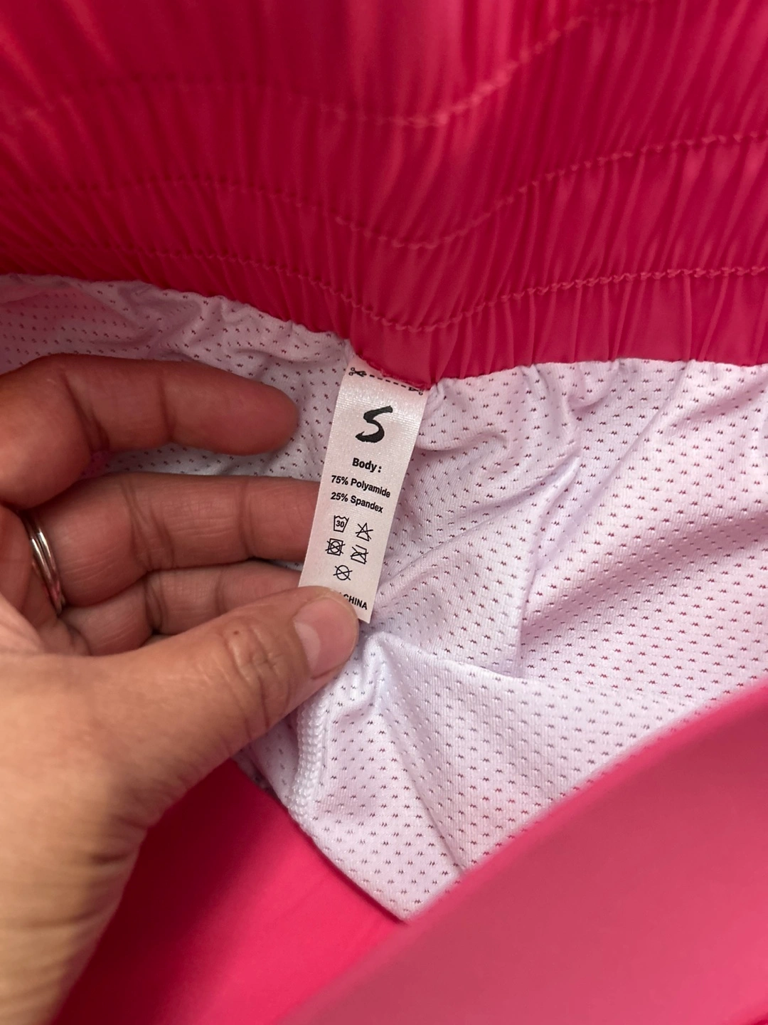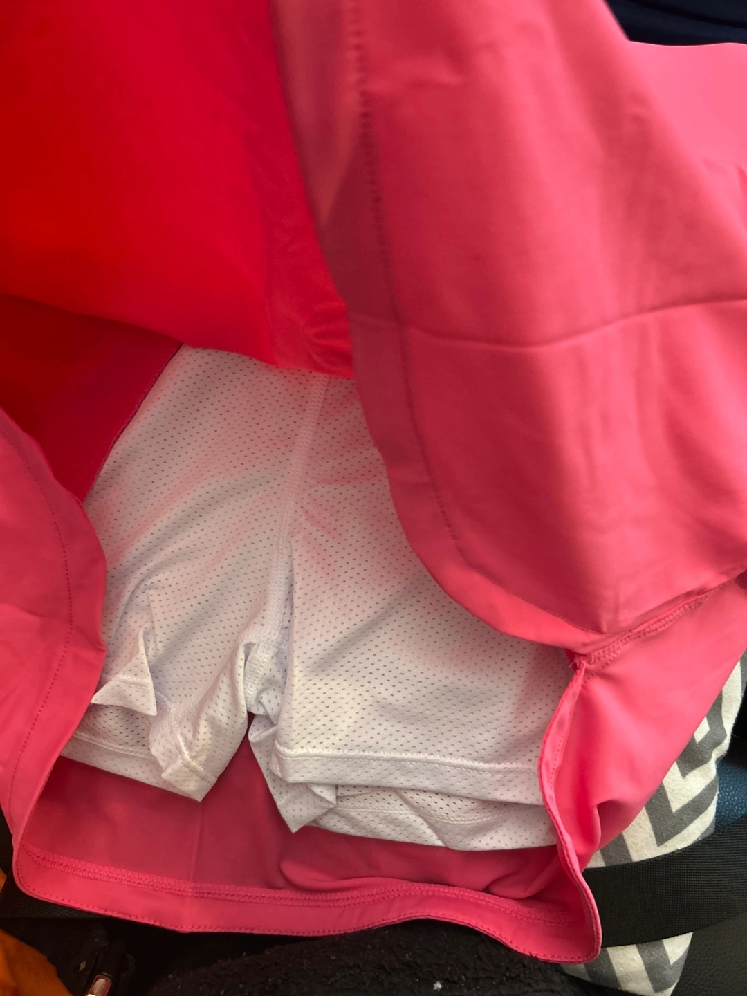 76Pink skort with built-in white shorts. Features a high waist. Has a pocket detail on the sides. Perfect for a peaceful walk or gentle exercise.