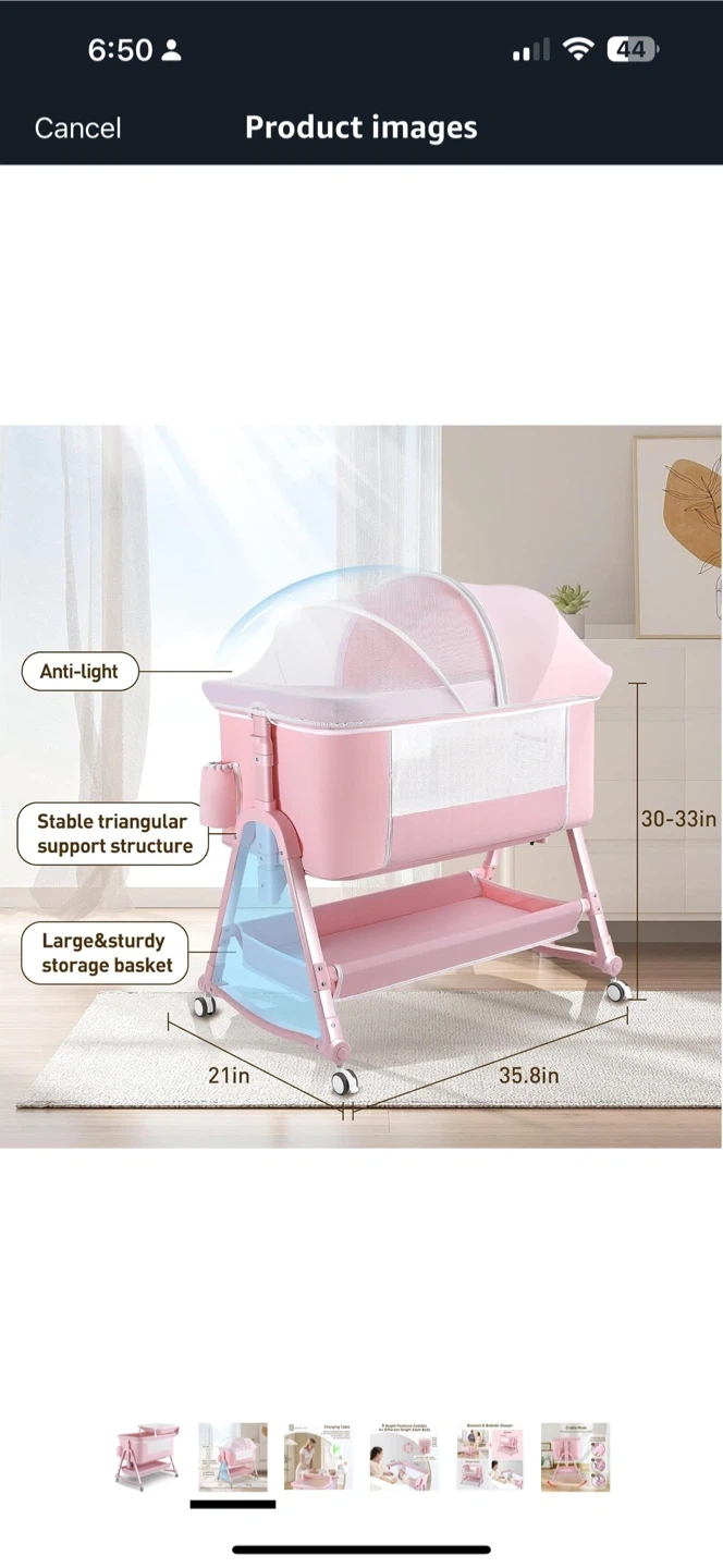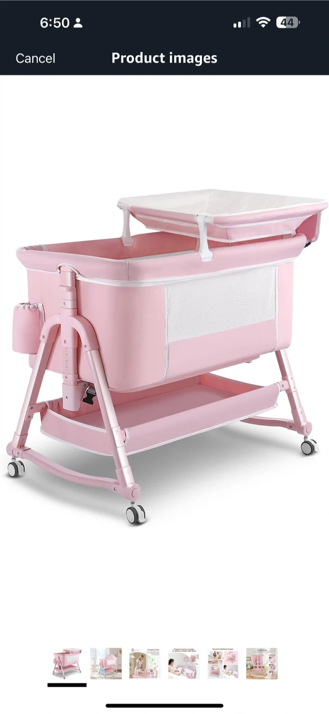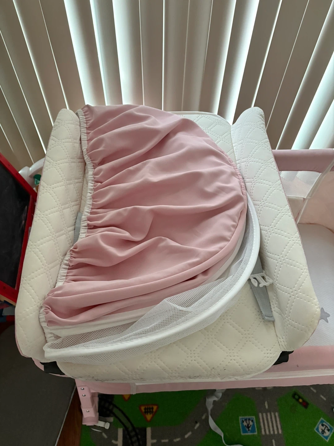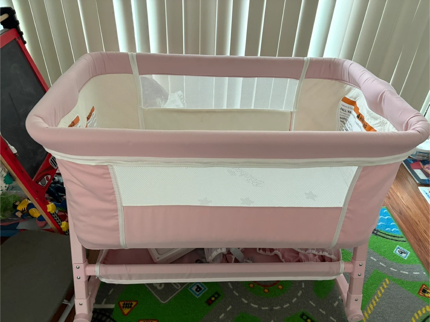 15Selling a baby bassinet in pink. It's in great condition and ready for a new home! Includes a changing table attachment and a fitted sheet. Pet free and smoke free house. Biloban mattress pad sold separately. Does not come with basinet. Basinet come with own light mattress as well.
