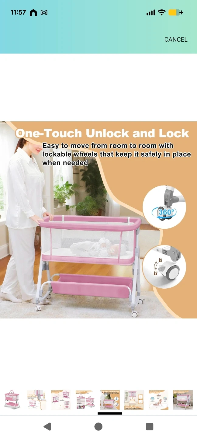 10Selling a gently used baby bassinet in pink! It's easy to move from room to room with lockable wheels that keep it safely in place when needed. Bedside basinet. Very comfortable for c section mom to handle newborn near them. Fully mesh covered for good air flow for baby. Used bedside so slight discolouration in the bend part. Otherwise perfect condition. Actuall cost 160$ around. Selling for 70 or OBO.