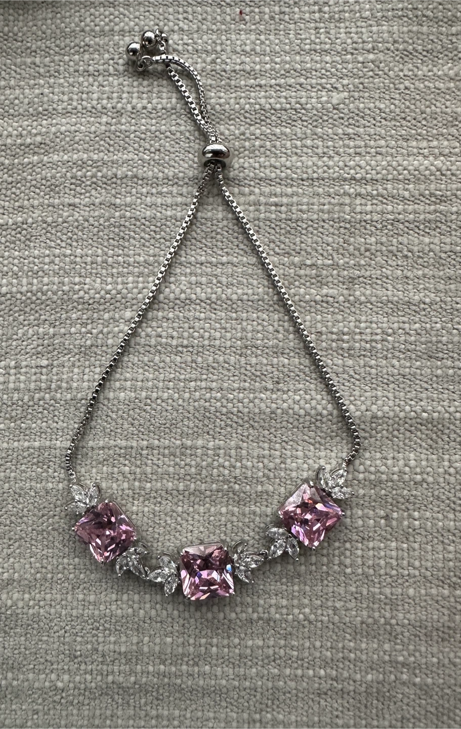292Selling a lovely bracelet featuring pink cubic zirconia stones. The bracelet has a silver-toned chain and an adjustable closure for a comfortable fit. It's brand new, never worn and would make a beautiful addition to any jewelry collection!