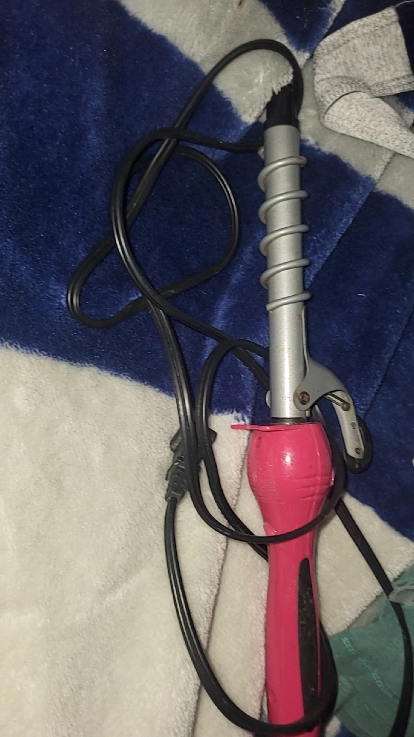 25Selling a curling iron with a pink handle. It's in used condition and ready for a new home! still has lots of life left!