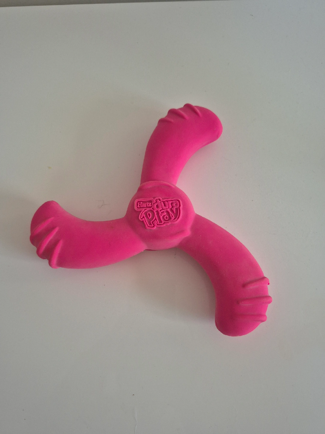 1000+Looking to add some fun to your furry friend's playtime? I'm selling a Hartz Dura Play Boomerang! This durable dog toy is perfect for interactive play and fetch. The bright pink colour makes it easy to spot, and the unique design will keep your pup entertained for hours. It's in great condition and ready for a new home!