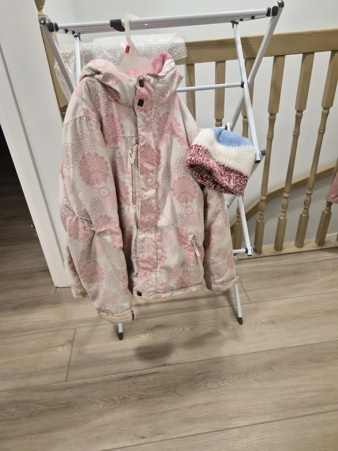 70Selling a cute winter jacket with a floral pattern and a matching hat! The jacket is perfect for keeping your little one warm during the colder months. It has a hood and pockets, and the hat is a cozy knit. Both items are in good used condition and ready for a new home! Light pink flowery winter coat Size: XL14 - $7 Pick up 100 Fundy Bay blvd at Birchmount and McNicoll or 100 Fundybay blvd near David Lewis school